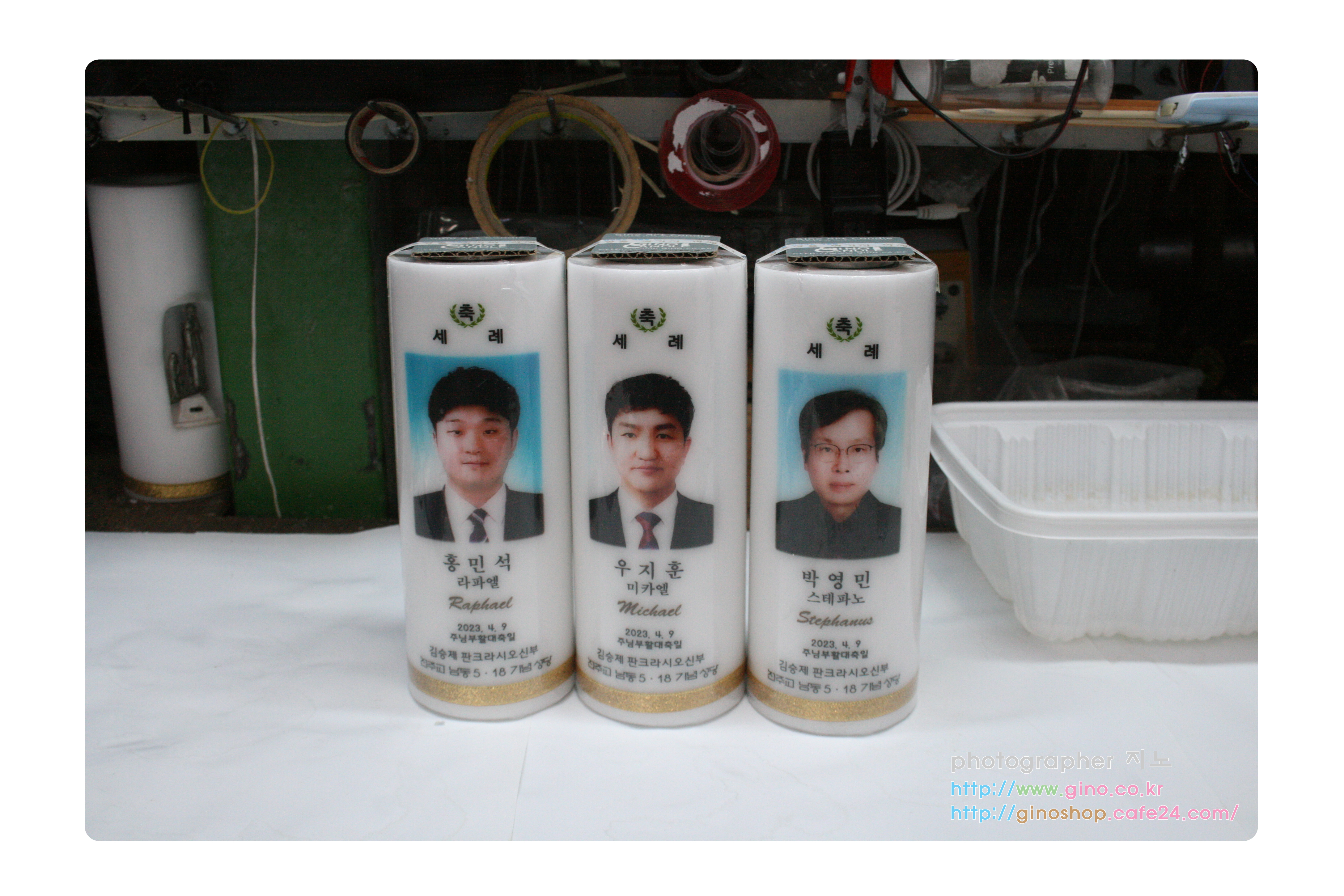 남동성당에서 축세례 행사때에 사용하기 위해서 주문 제작을 하신 양초 캔들 입니다.