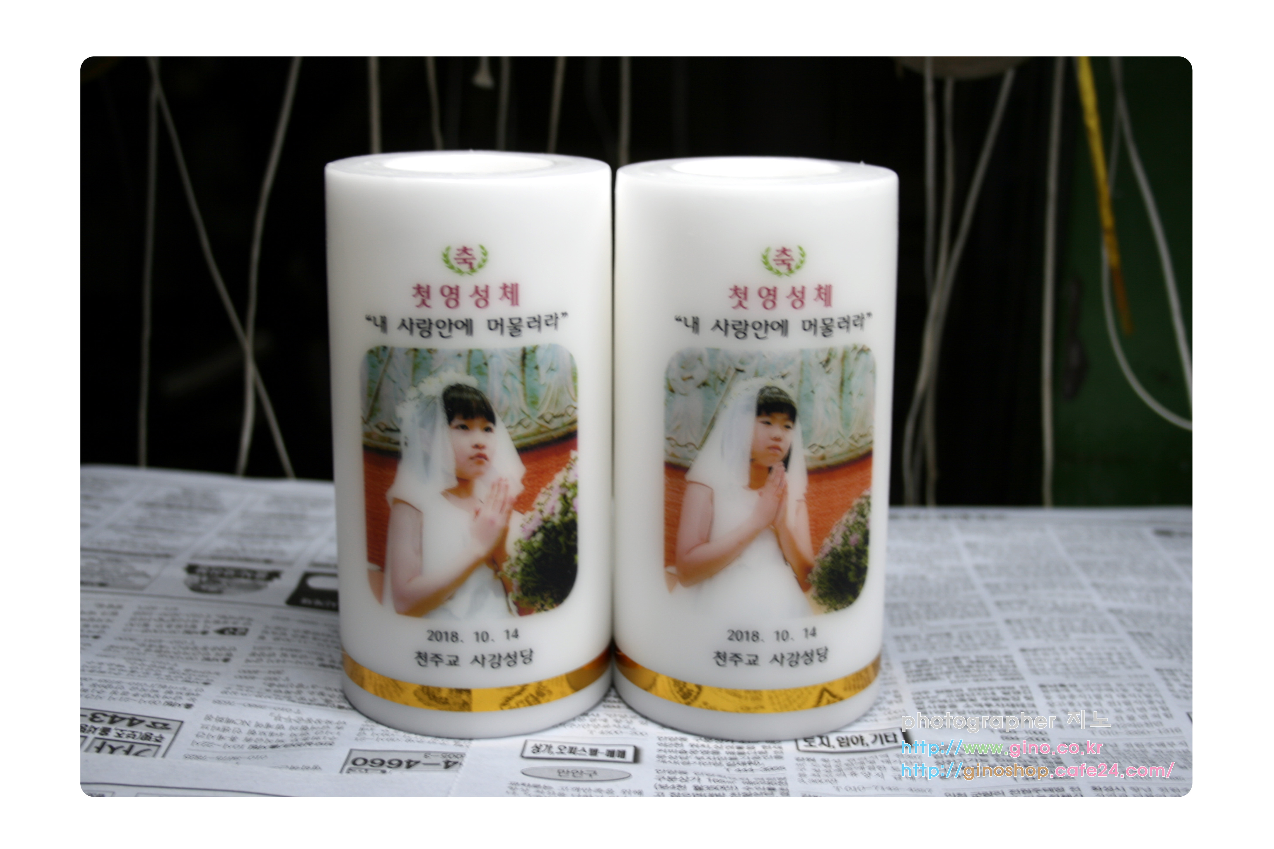 사강성당에서 첫영성체 행사대 사용하기 위해서 주문 제작을 하신 캔들 입니다.