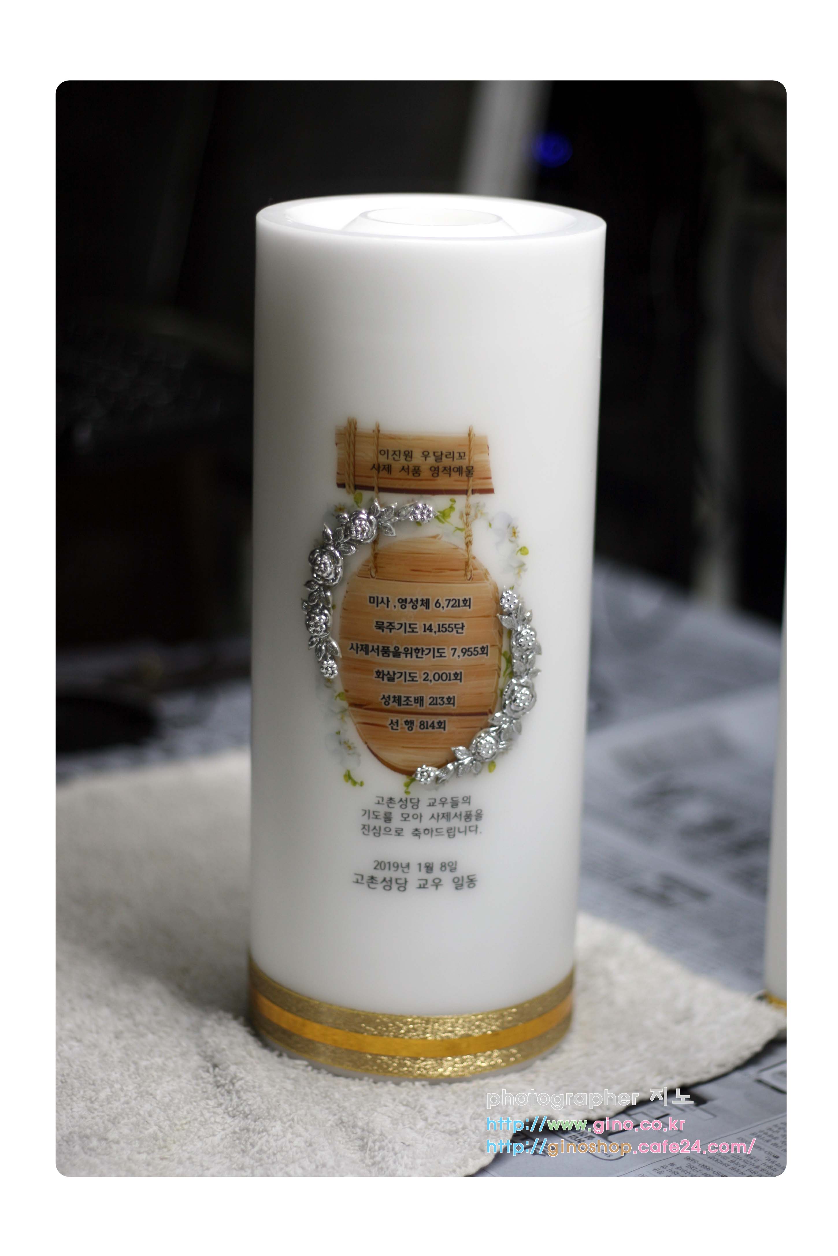 고촌성당에서 이진원(우달리꼬)신부님 사제서품 기념 선물 정성스런 영적예물을 담아 주문 제작을 하신 캔들입니다.