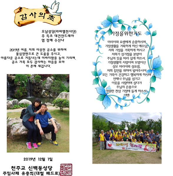오남성당(라파엘천사단) 주 득초 대건안드레아 염 정애 수산나