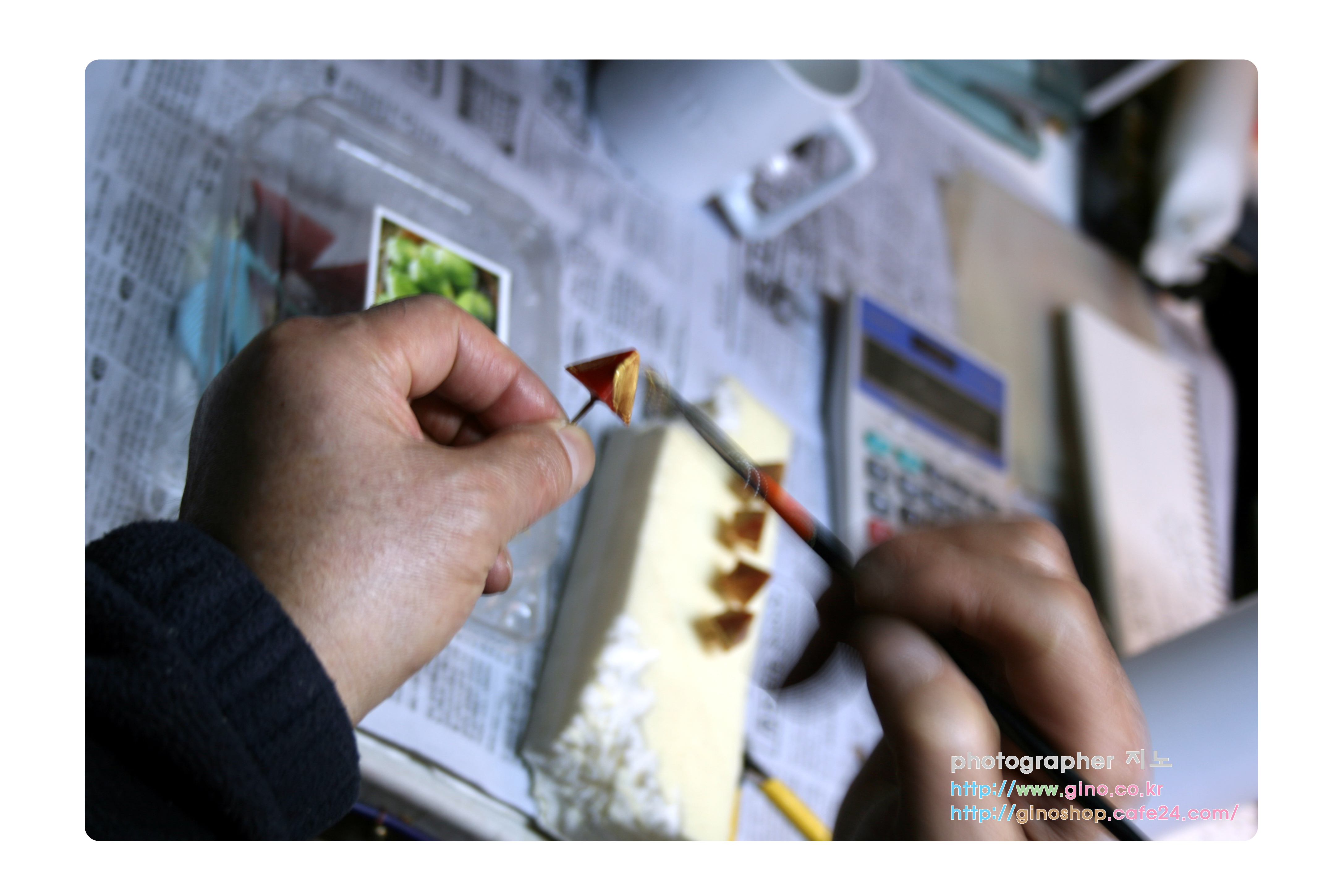 그리고 오상은 예전에 혹여나 활용되지 않을까 하여 작은 size도 같이 만들어준 금형에 부어서 제작후 표면에 금분 색칠