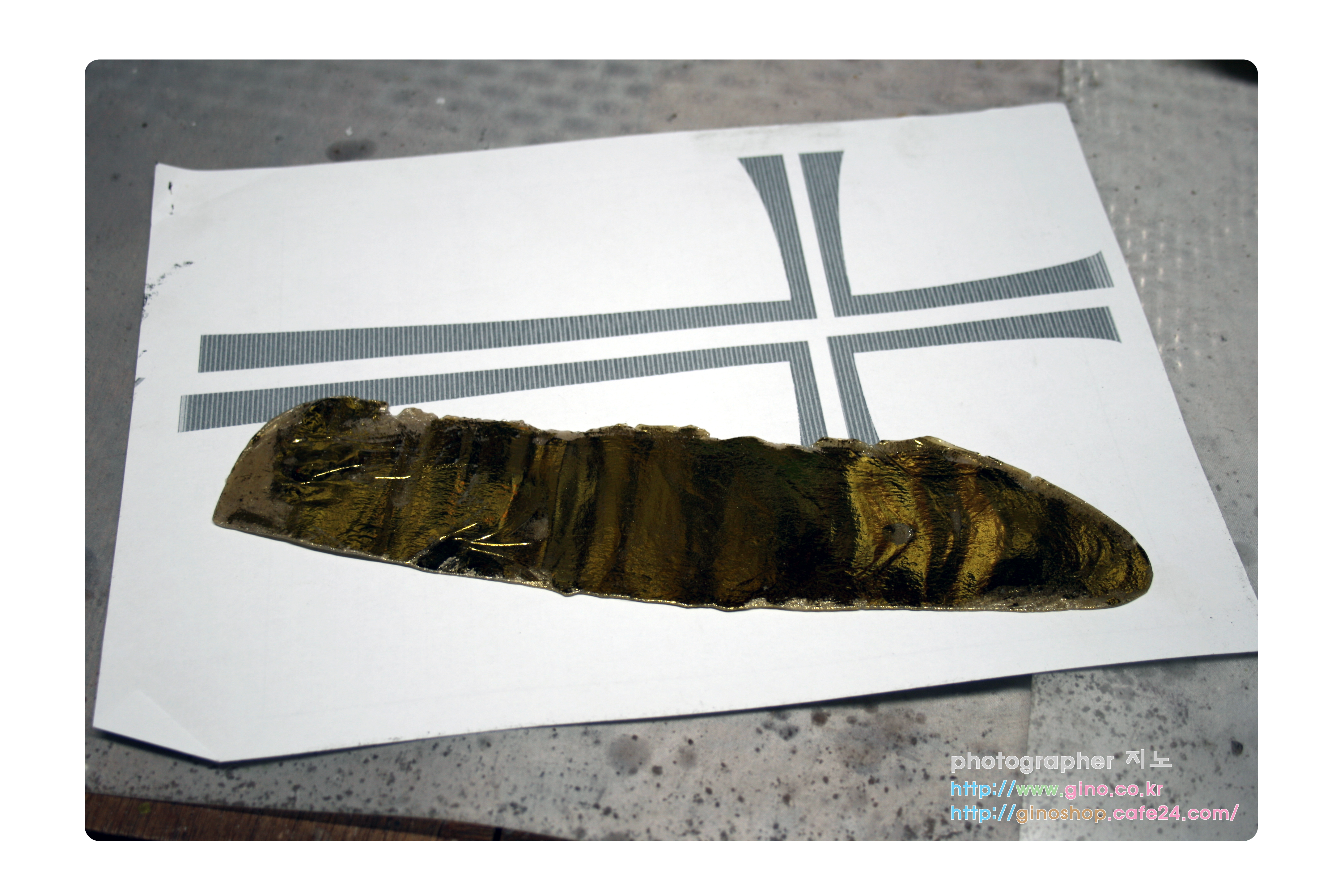 독일거는 옅은 백금톤이라서 대리석 무늬의 표현의 처리가 잘 두드러지는 반면 저희가 가지고 있는 금박의 색상은 금박이 짙은 색이다 보니 대리석 이미지 표현이 잘 나오지가 않습니다. 진행 과정의 변수가 발생을 합니다. ..................................................................
