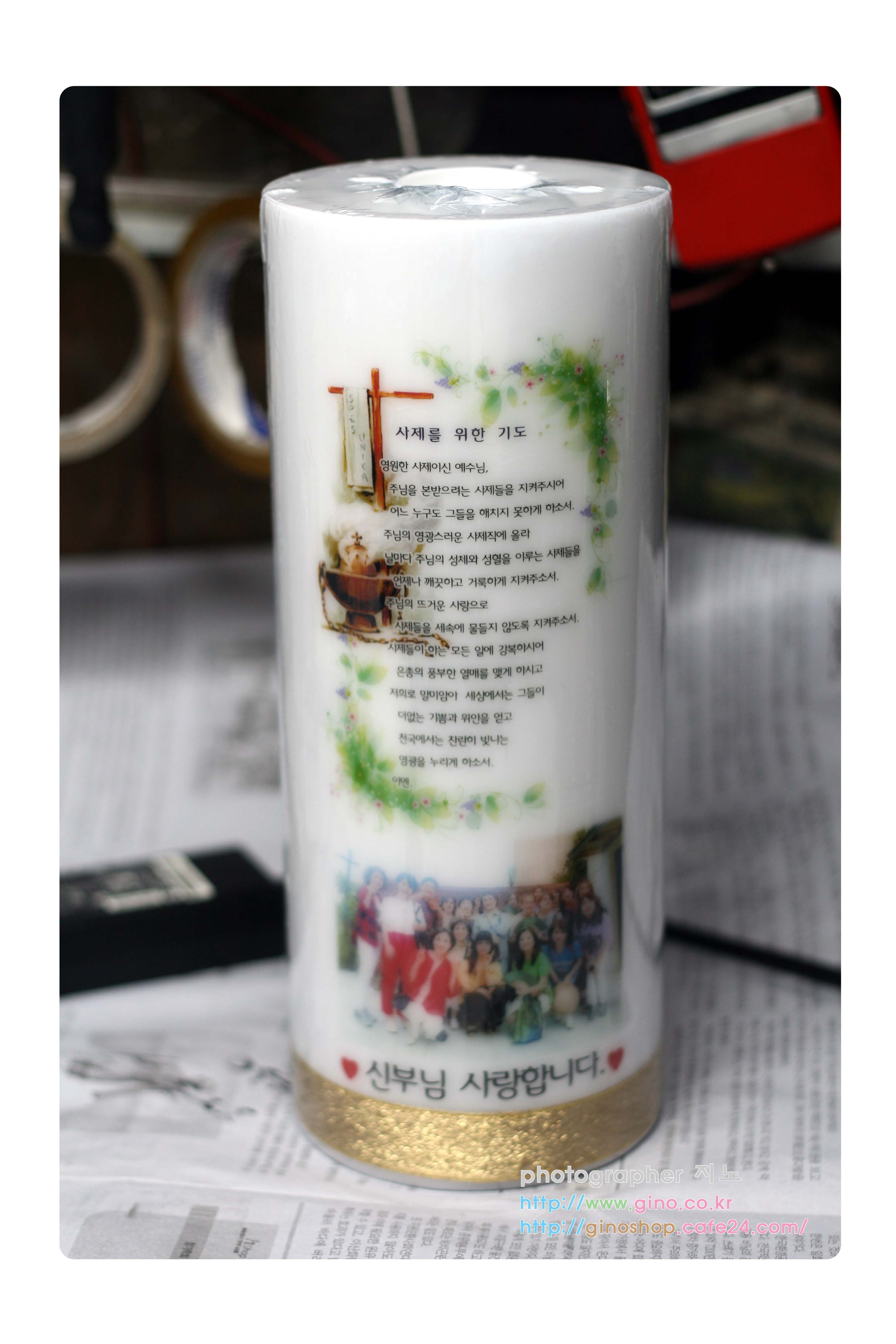 공군중앙성당에서 신부님의 영명축일 맞이하여 정성스런 영적예물과 감사의 내용을 담아 주문 제작을 하신 선물 캔들 입니다.