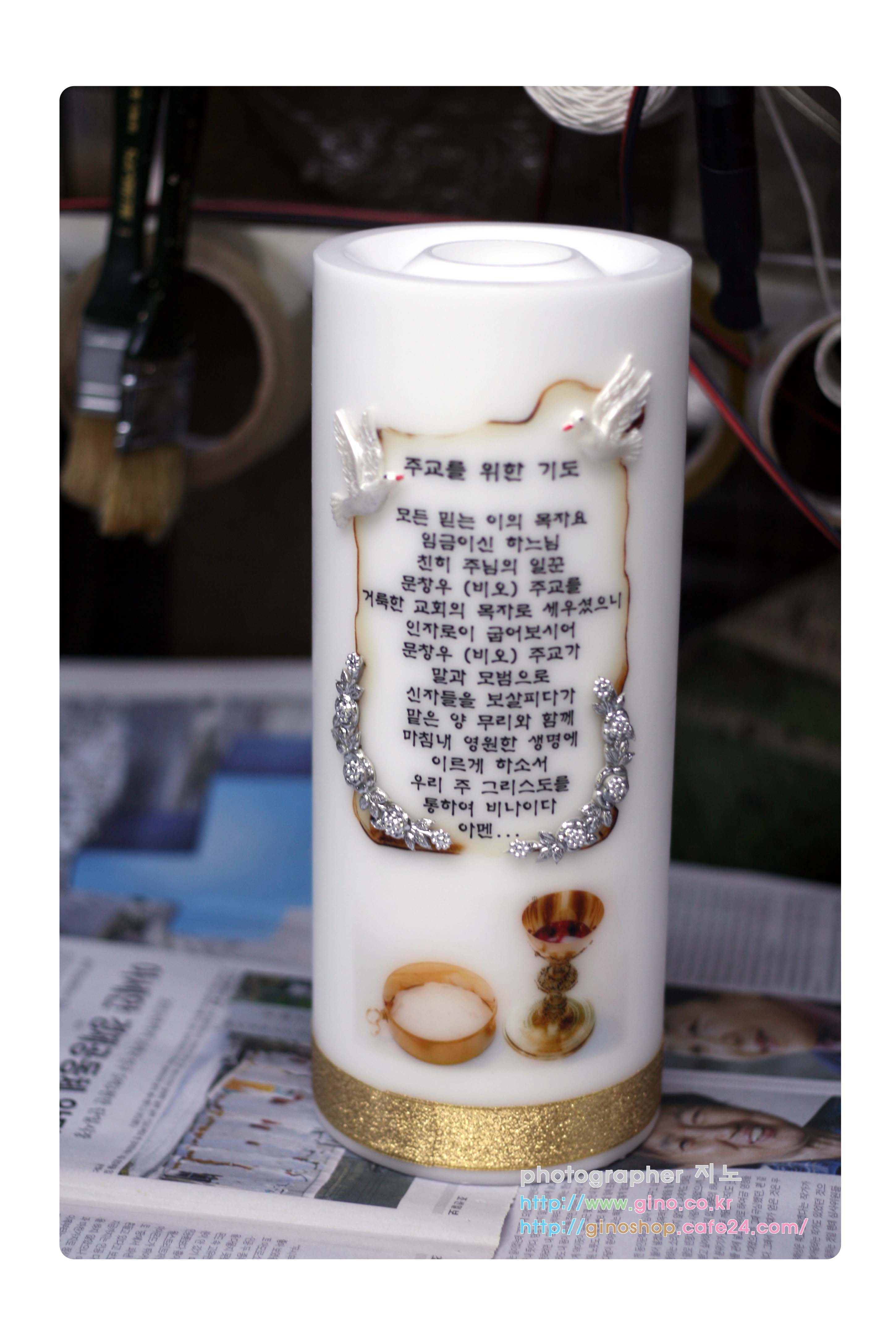 서귀복자성당에서 문창우(비오)주교님께 선물로 뜻깊은 내용과 뒷면에는 주교자를위한 기도문과 관련 이미지를 넣어 주문 제작을 하신 캔들 입니다.