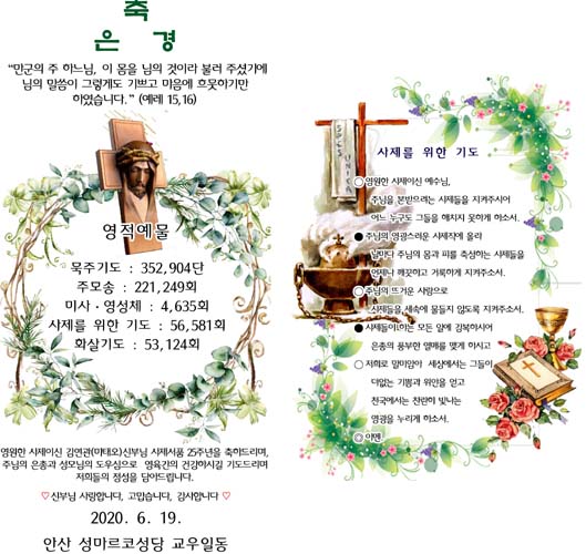 영원한 사제이신 김연관(마태오)신부님 사제서품 25주년을 축하드리며, 주님의 은총과 성모님의 도우심으로 영육간의 건강하시길 기도드리며 저희들의 정성을 담아드립니다. ♡ 신부님 사랑합니다, 고맙습니다, 감사합니다 ♡