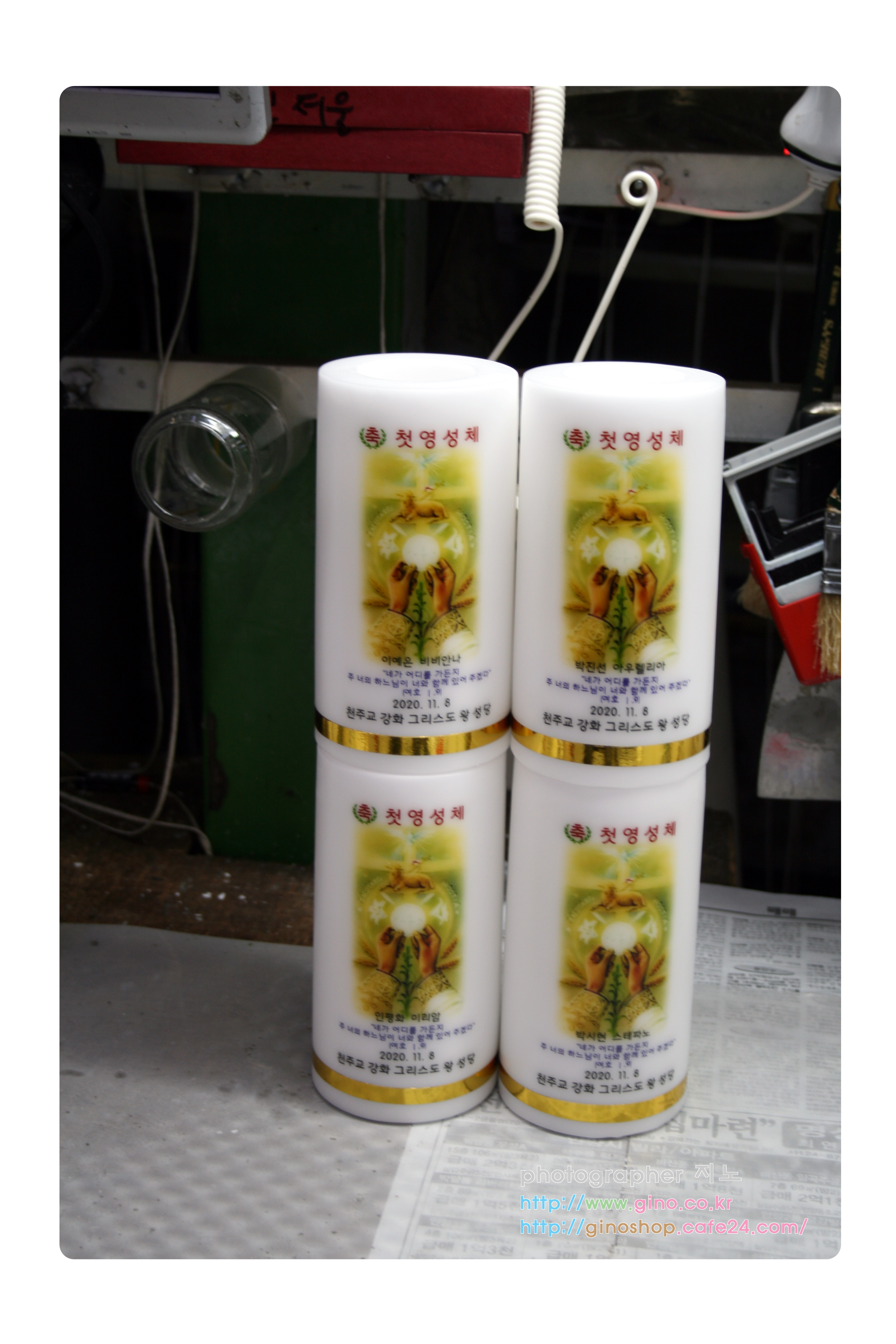 강화 그리스도 왕 성당에서 첫영성체 행사때 사용하기 위해서 주문 제작을 하신 양초 캔들 입니다.