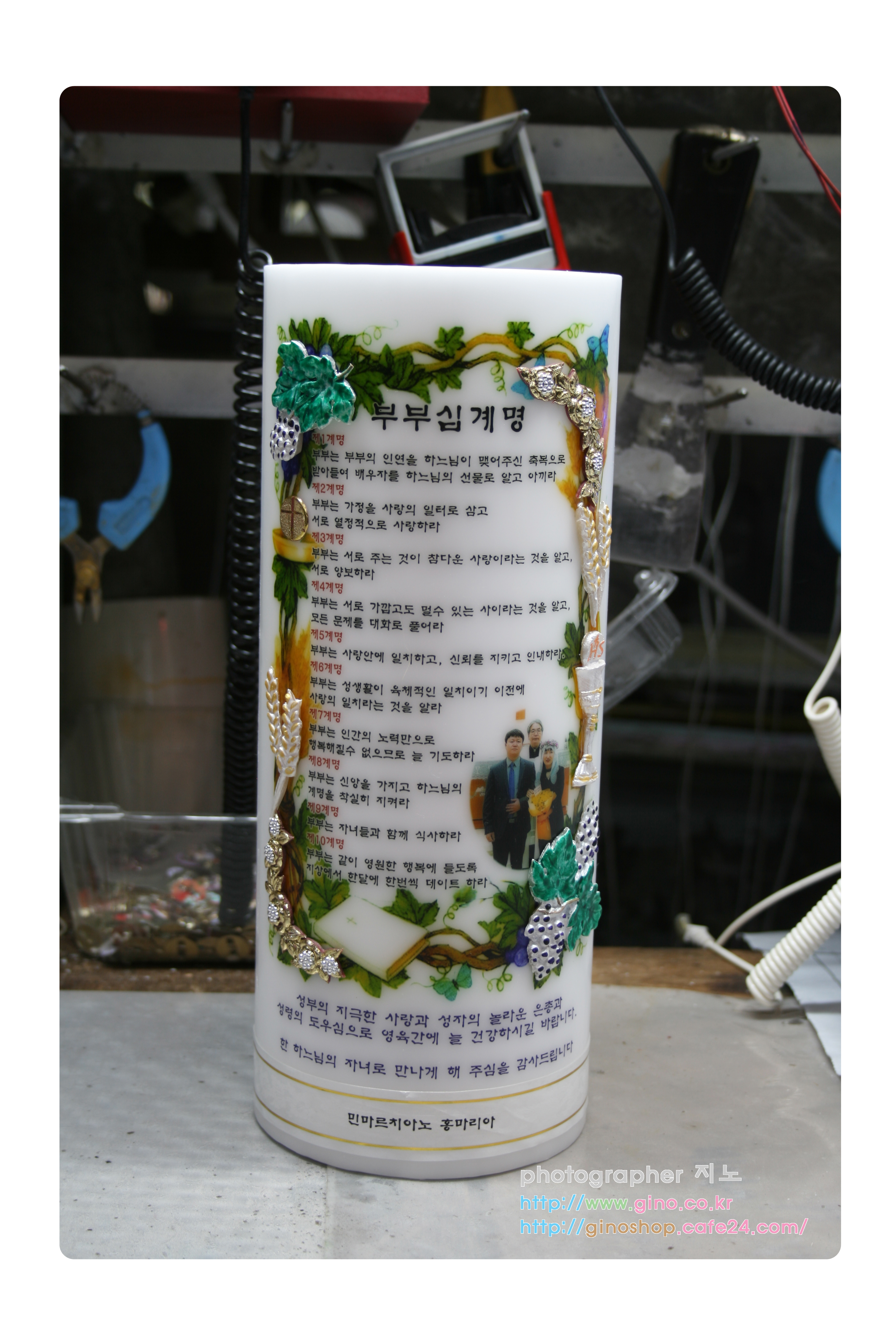 선물용으로 부부십계명의 받으시는분들 사진과 내용을 담아 주문 제작을 하신 양초 캔들입니다.