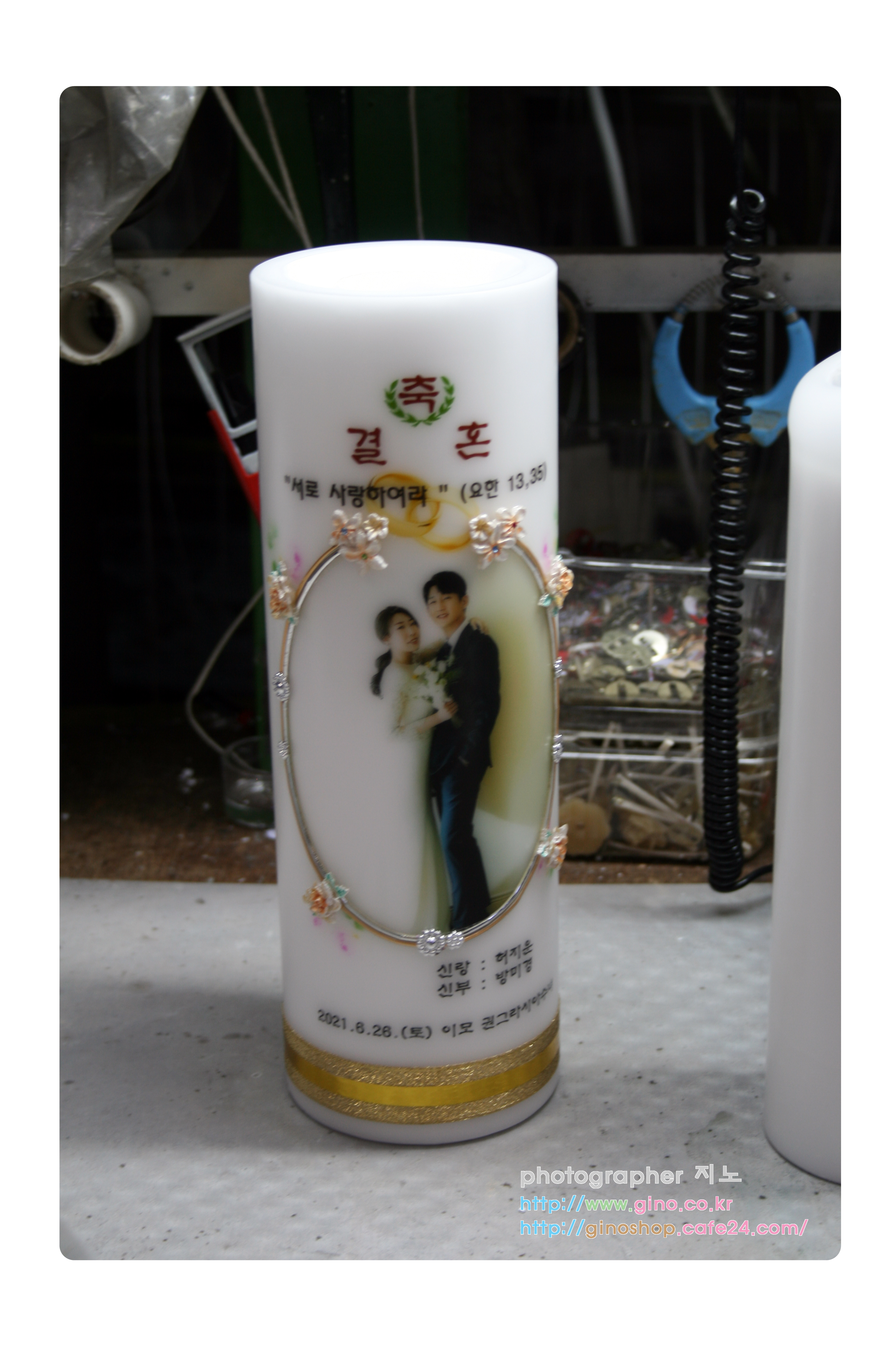 결혼 선물로 주문 제작을 하신 양초 캔들입니다.