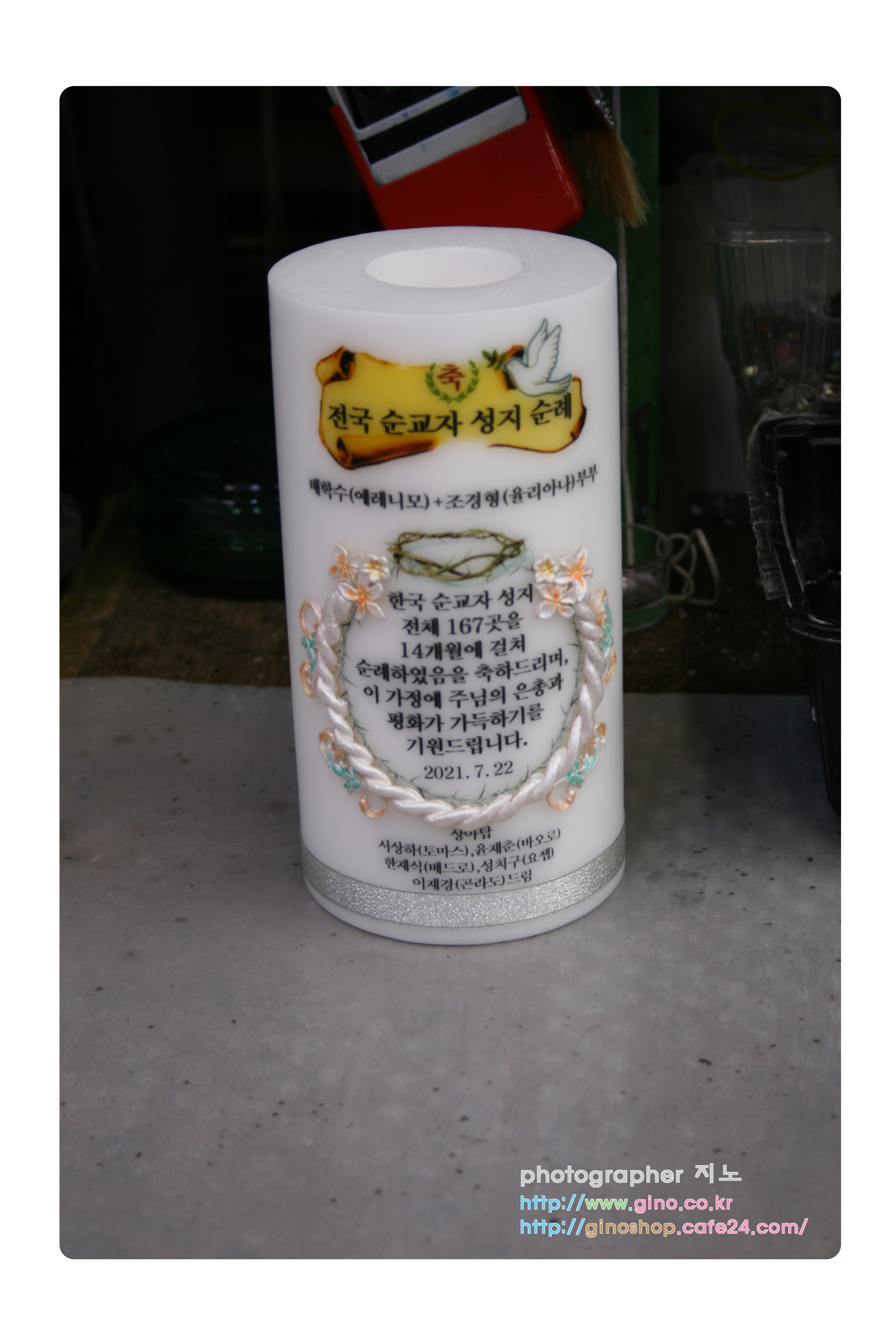 전국 순교좌 성지 순례 기념으로 주문 제작을 하신 양초 캔들입니다.