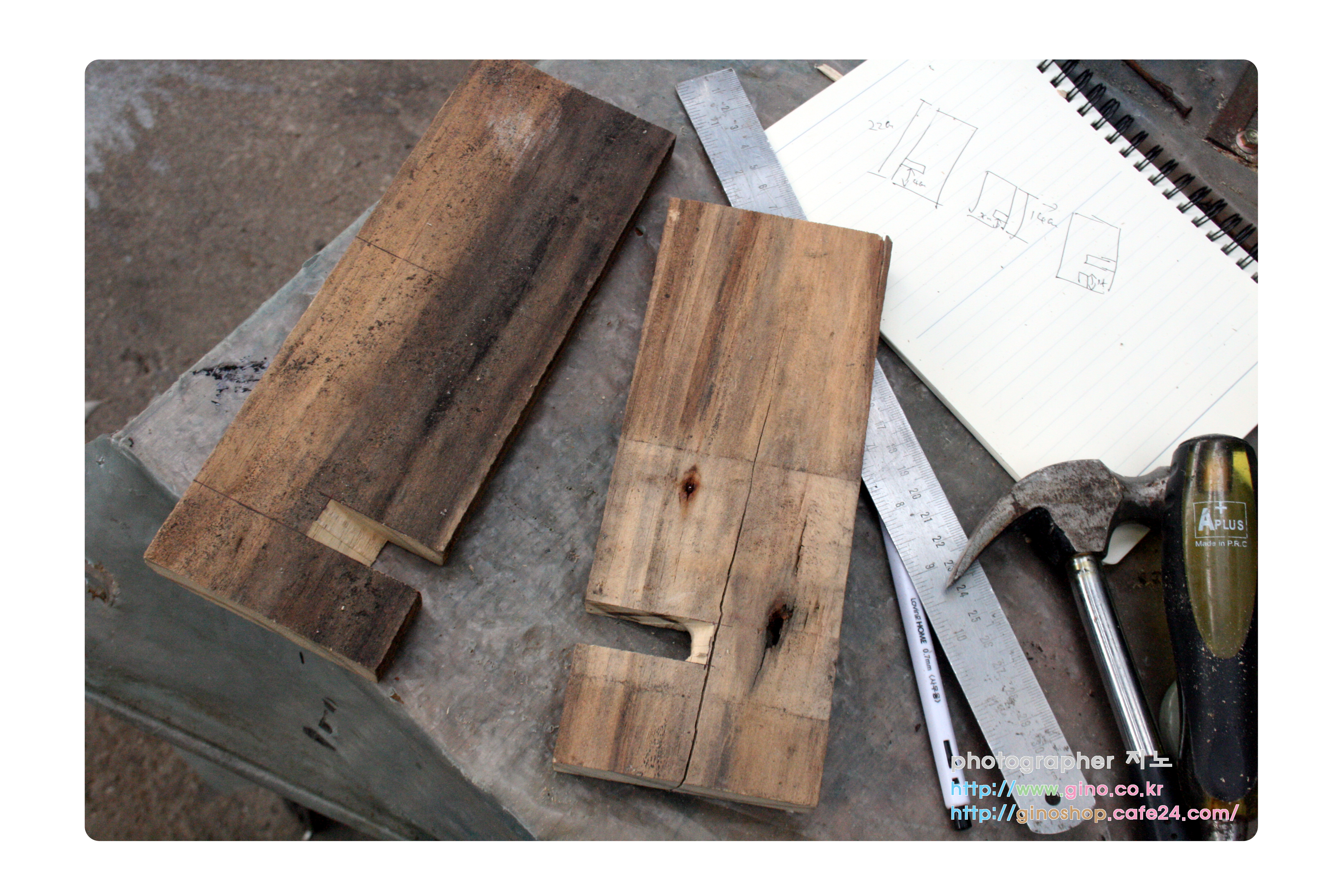 저 같은 경우는 구형 오래된 노트 시리즈 핸드폰을 사용을 하고 있습니다. 오래된 모델이다보니 배터리 사용 시간이 짧아서 뒷면에 가지고 있던 태양광 보조 배터리 부분을 개조해서 스마트폰 뒷면의 유리커버를 제거를 하고 몰아일체 상태로 붙여서 사용을 하고 있습니다. 매우큰 단점으로 무개가 제법 나가다 보니 누워서 스마트폰을 보게 되면 팔이 아파서 불편함이 많습니다. 핸드폰을 바꾸라는 분들이 분명 계시겠지만, 저희 생각은 고장나서 뿌서질때까지 사용한다 라는 개념이 있어서 이 불편함을 보완하기 위해서 핸드폰 나무 거치대를 만들어 지는 과정을 소개해 보고자 합니다. 나무는 역시 파레트 나무를 뜯어서 준비를 하고 대략 적인 제품 치수를 측정을 해서 종이에 메모를 하여 제작 만들기 과정에 들어갑니다.