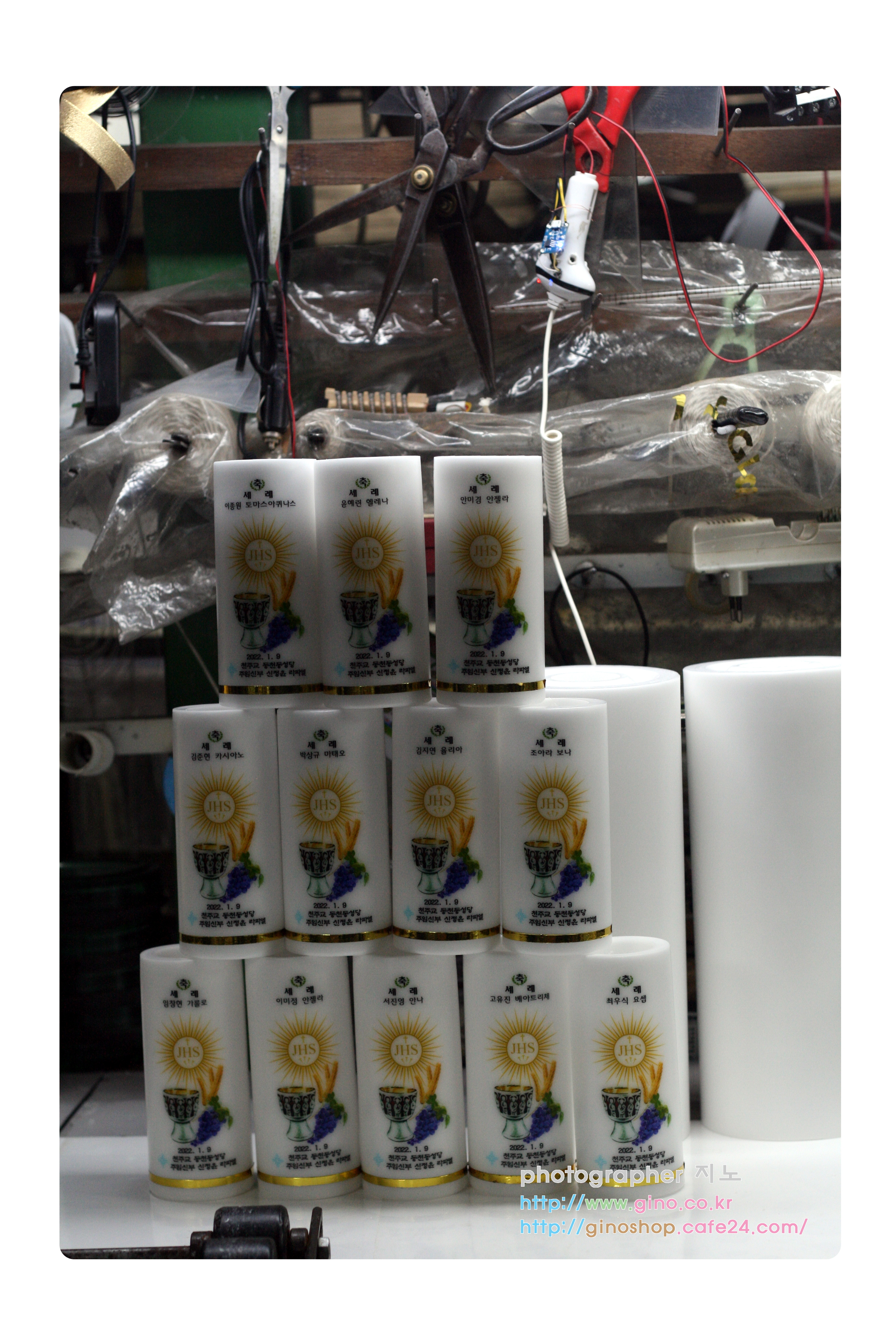 동천동성당에서 축세례 행사때 사용하기 위해서 주문 제작을 하신 양초 캔들 입니다.