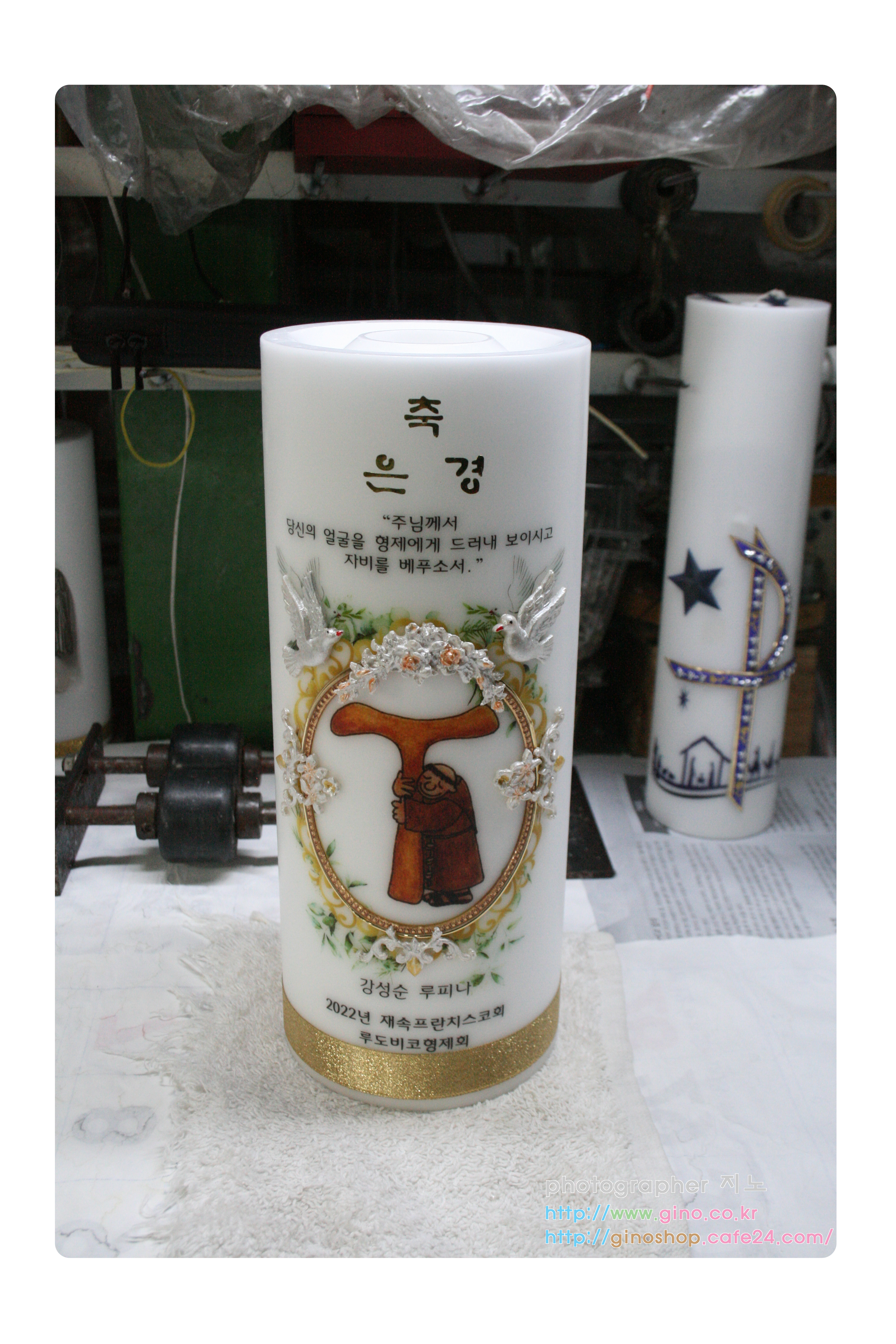 2022년 재속프란치스코 루도비코형제회에서 축은경 받으시는 분 선물로 주문 제작을 하신 양초 캔들입니다.