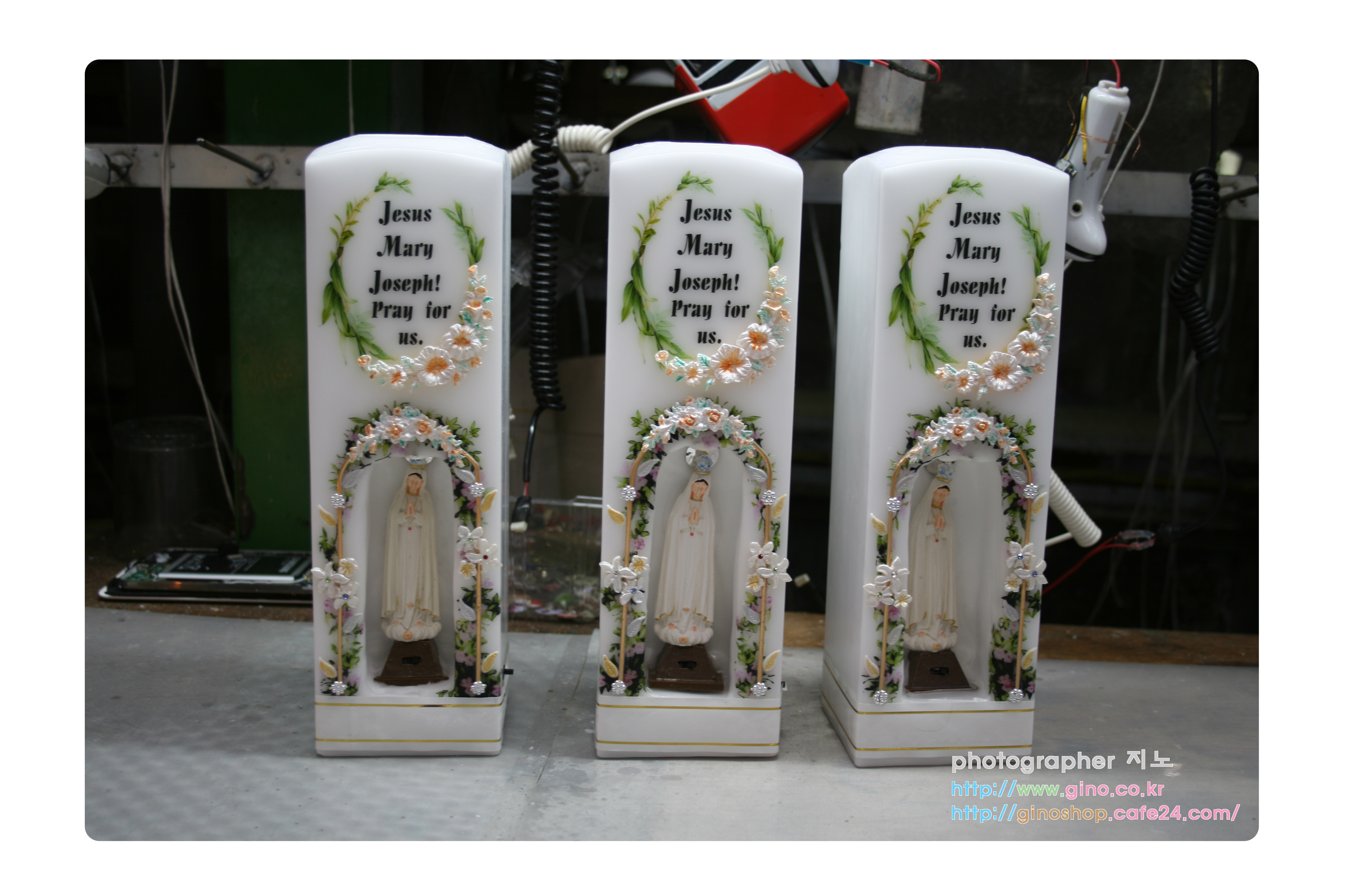 선물용으로 주문 제작을 하신 jesus mary joseph pray for us 파티마성모 led 양초 캔들 입니다.