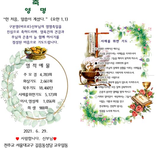 | 화정동성당 주임신부님 부주임신부님 영명축일 초안 (0) | 2021.06.19 |
