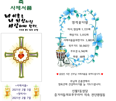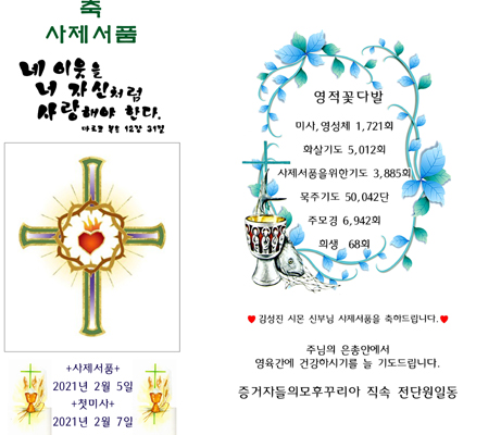 뒷부분 영적꽃다발 "번"으로 된부분 "회"로 수정 해주시고 하트 밑에 내용 마지막부분 기도드립니다로 수정