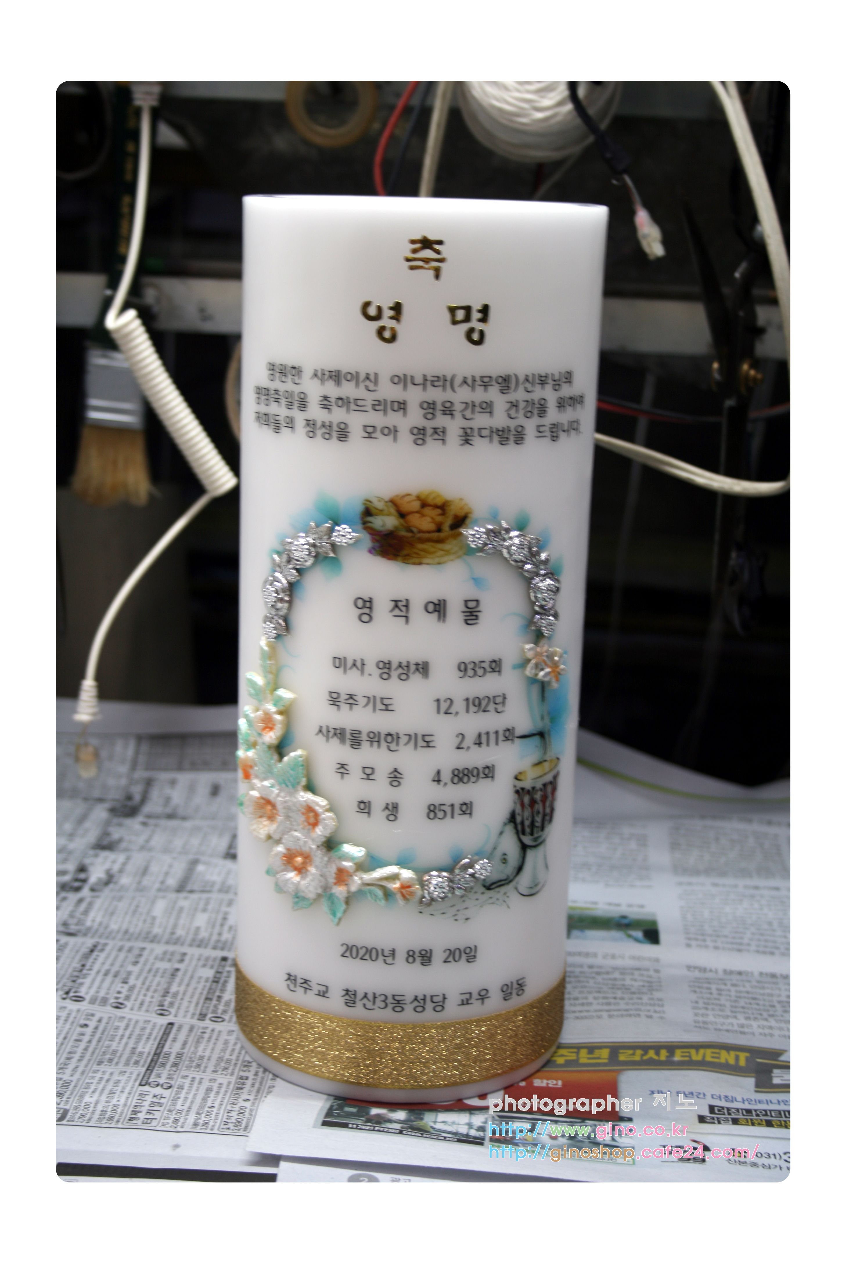 철산3동성당에서 이나라 사무엘 신부님 영명축일 맞이하여 정성스런 영적예물을 담아 주문 제작을 하신 양초 캔들 입니다.