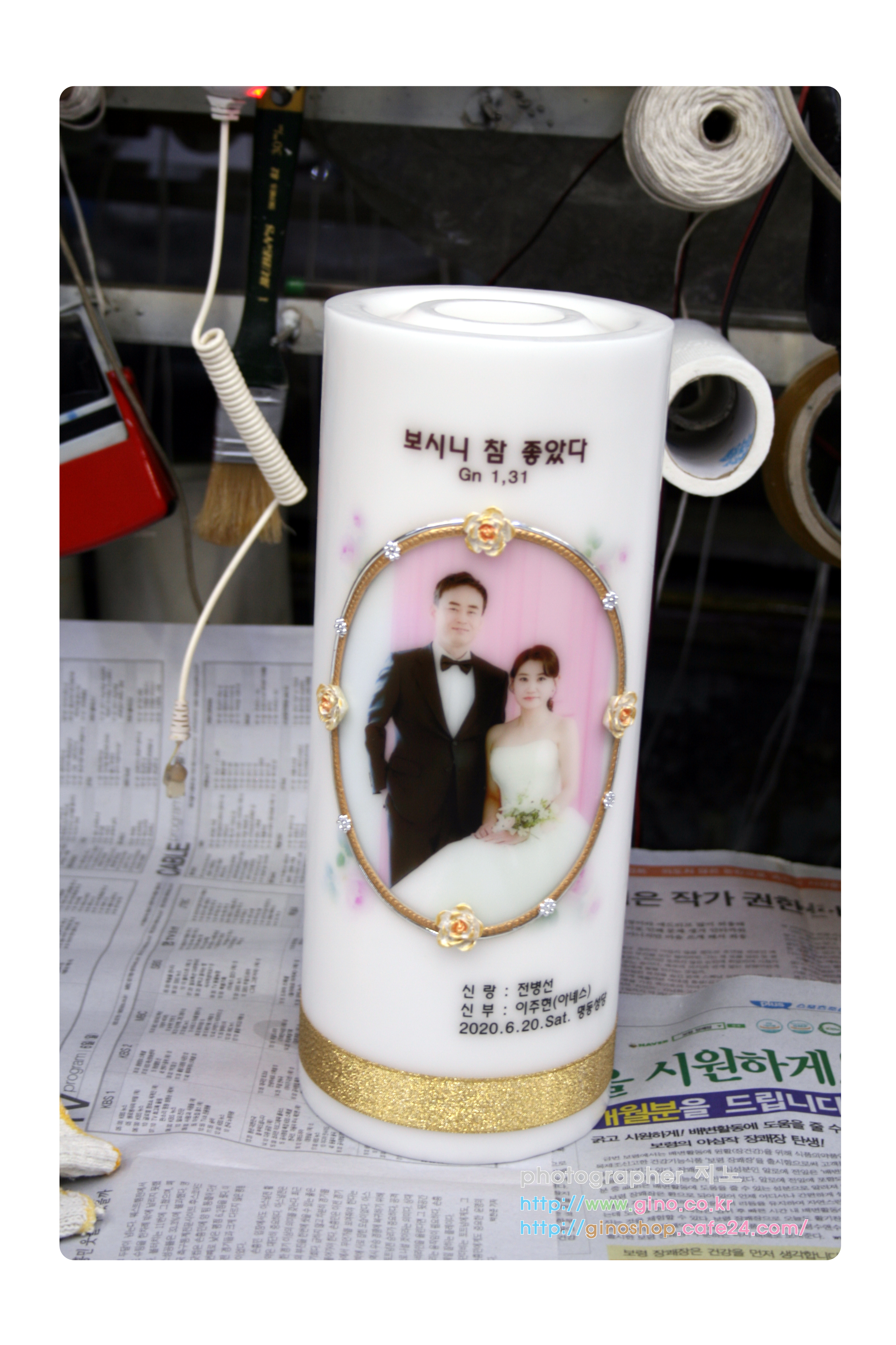 결혼 선물로 주문 제작을 하신 양초 캔들 입니다.