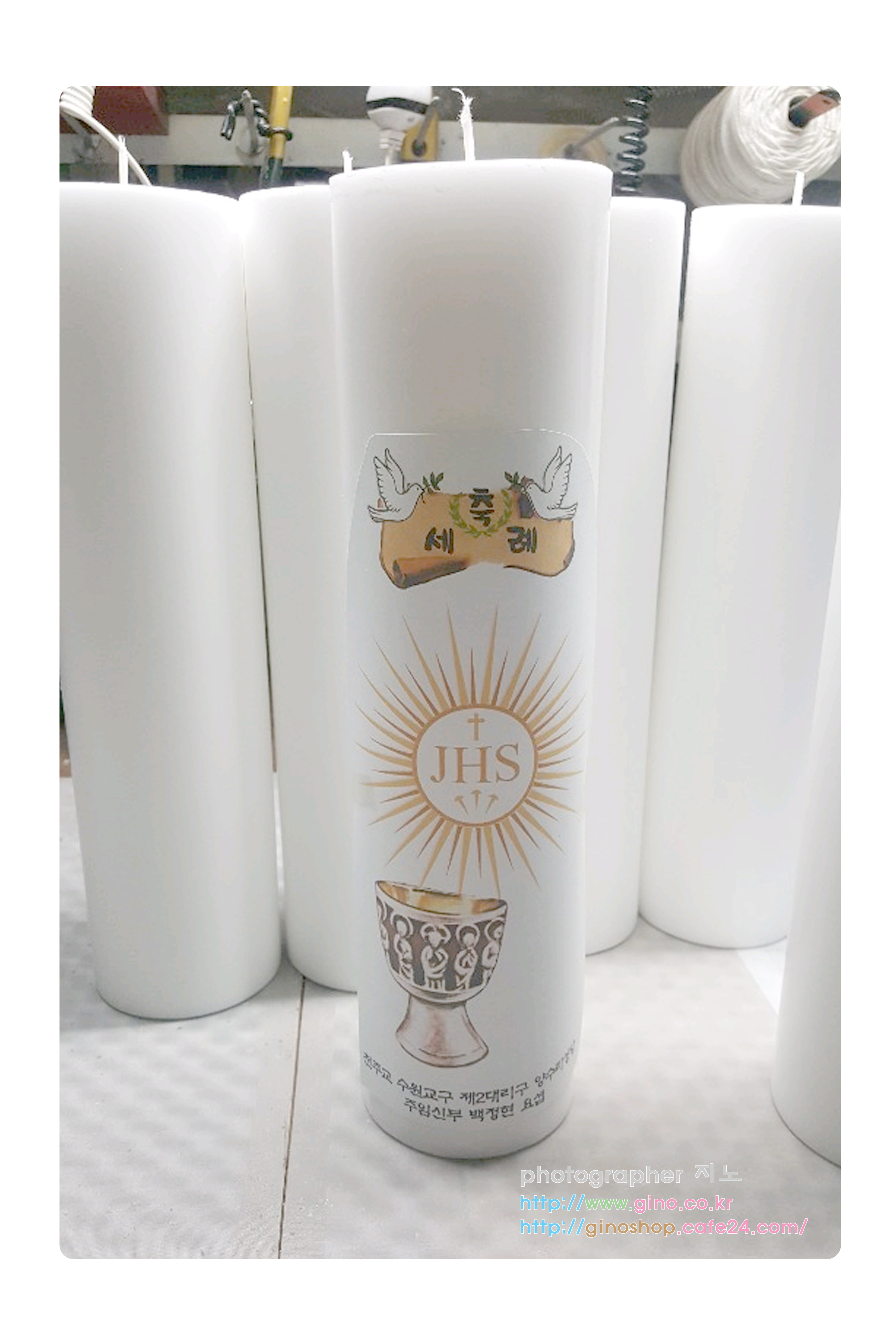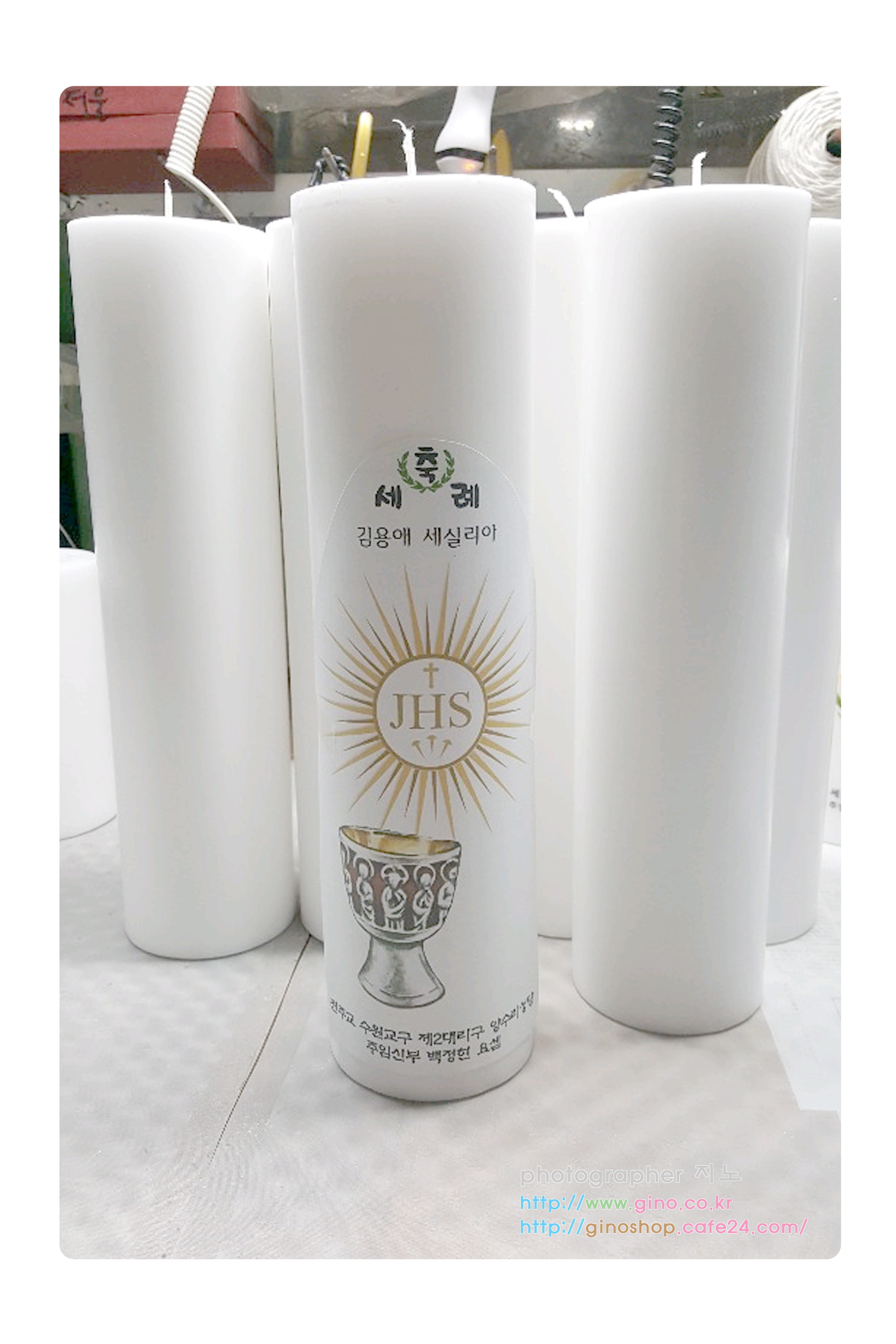 은행동성당에서 축세례 행사때 사용하기 위해서 주문 제작을 하신 양초 캔들 입니다.