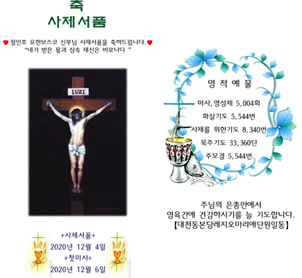 | 대천동본당레지오마리애단원일동 사제서품 초안 (0) | 2020.11.30 |