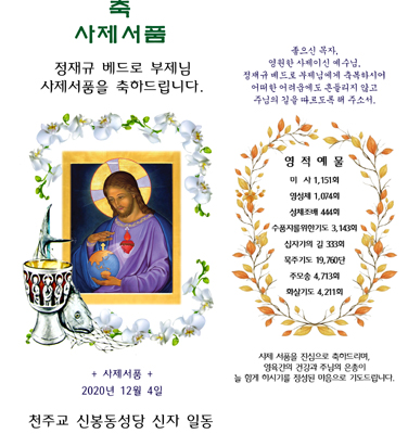 | 인천교구 오류동성당 하선호(스테파노)신부님 영명축일 양초 캔들 2019.12.26 (0) | 2020.09.16 |