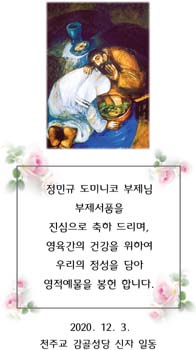 정민규 도미니코 학사님 부제서품을 진심으로 축하 드리며, 영육간의 건강을 위하여 우리의 정성을 담아 영적예물을 봉헌 합니다.