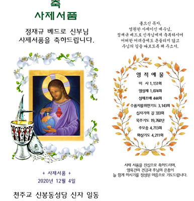 | 신봉동성당 사제서품 초안 (0) | 2020.11.30 |