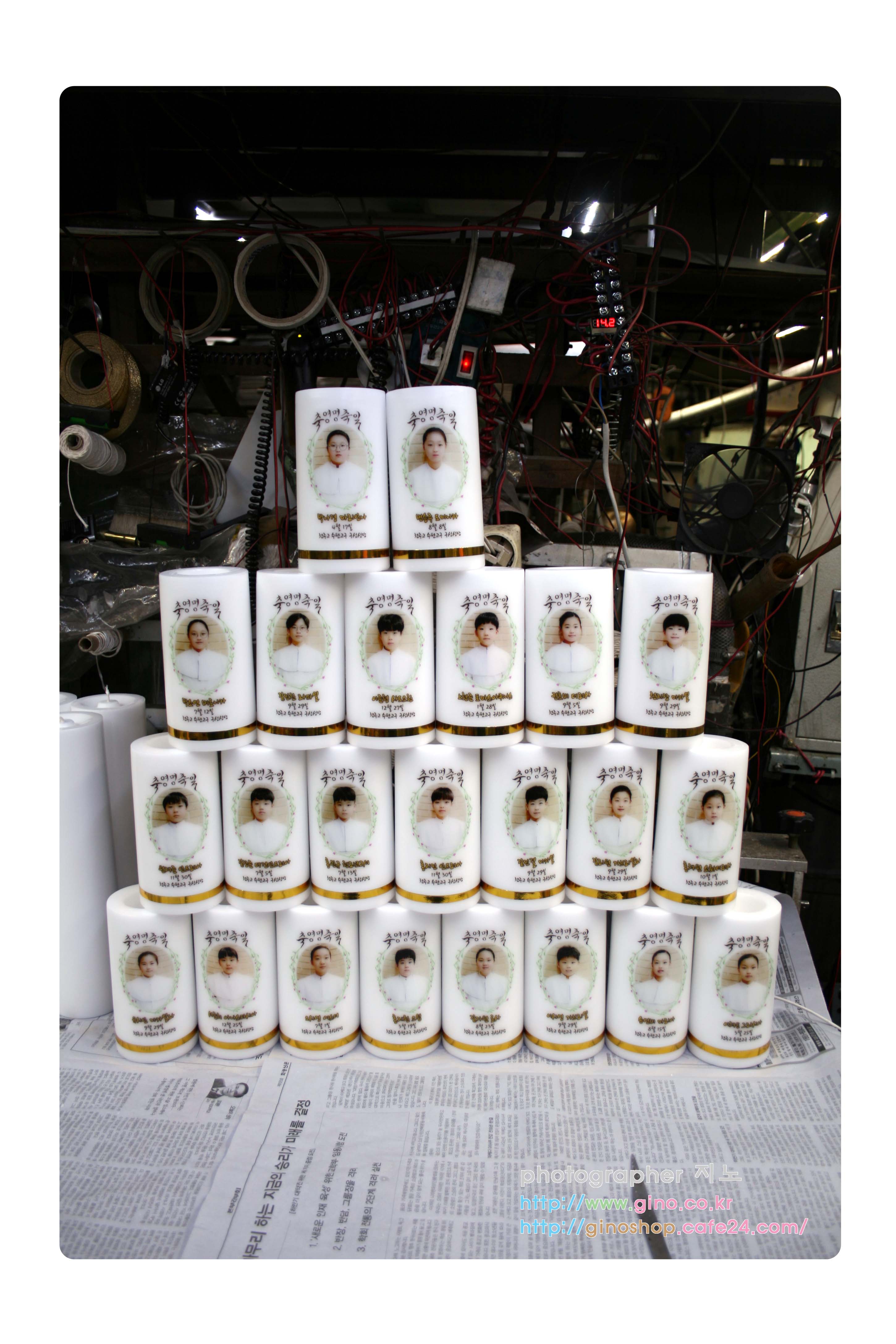 수원교구 구성성당에서 영명축일에 개별 사진과 이름을 넣어 주문 제작을 하신 양초 캔들 입니다.