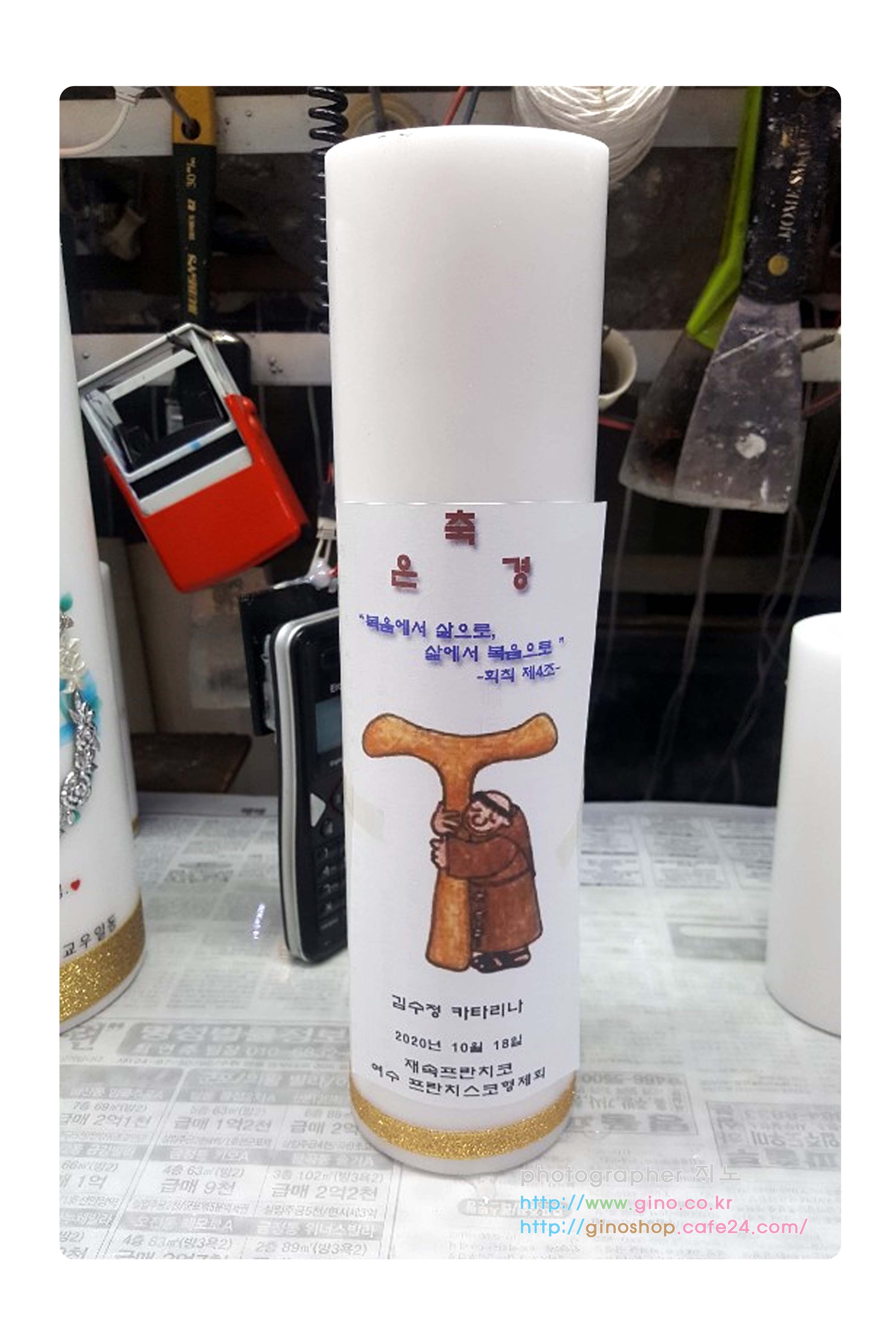 재속프란치스코 여수 프란치스코형제회 축 은경 양초 캔들 종이 시안