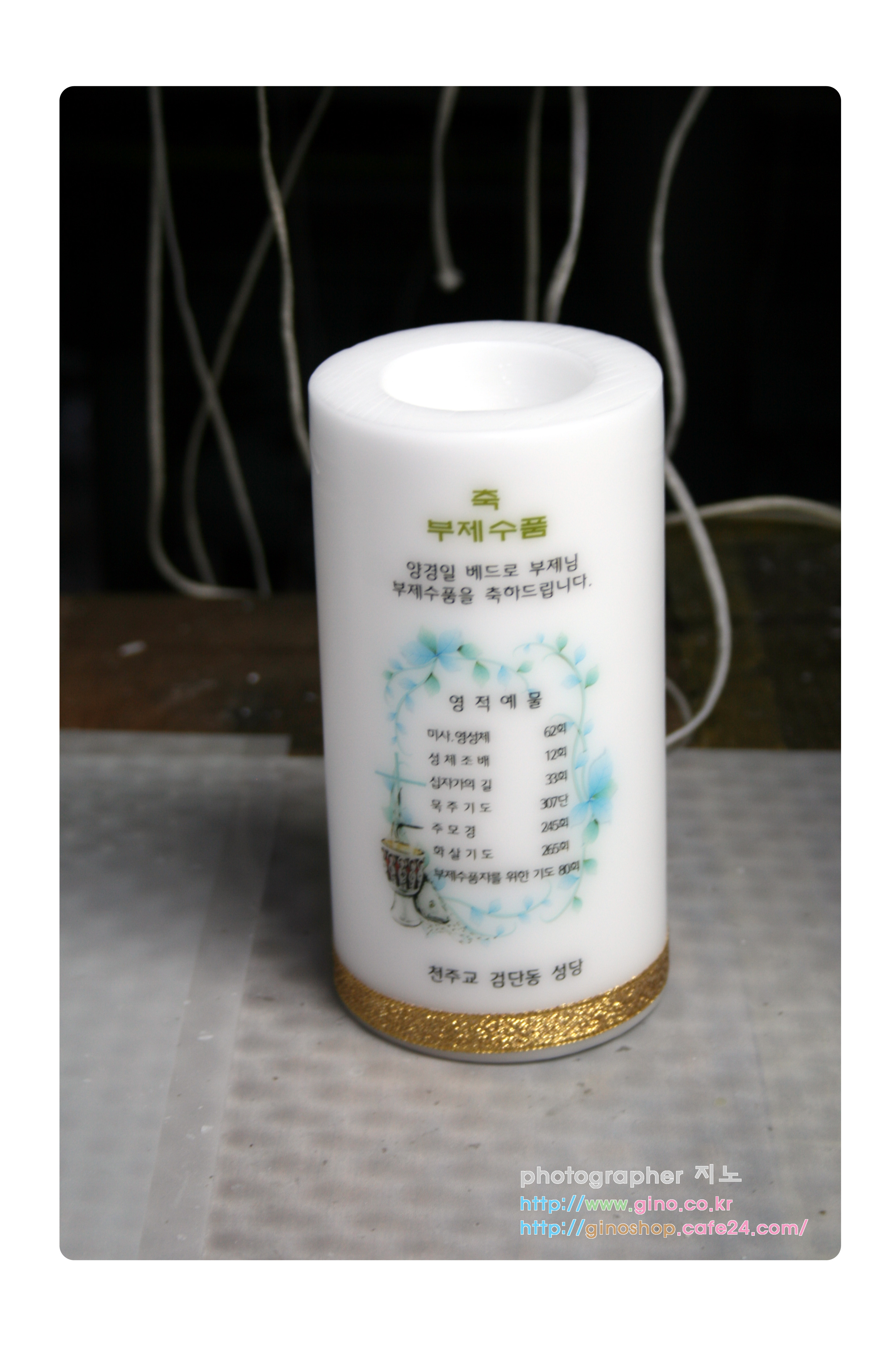 둔포성당에서 한영승(세례자 요한)신부님께 감사의 내용을 담아 주문 제작을 하신 양초 캔들입니다.
