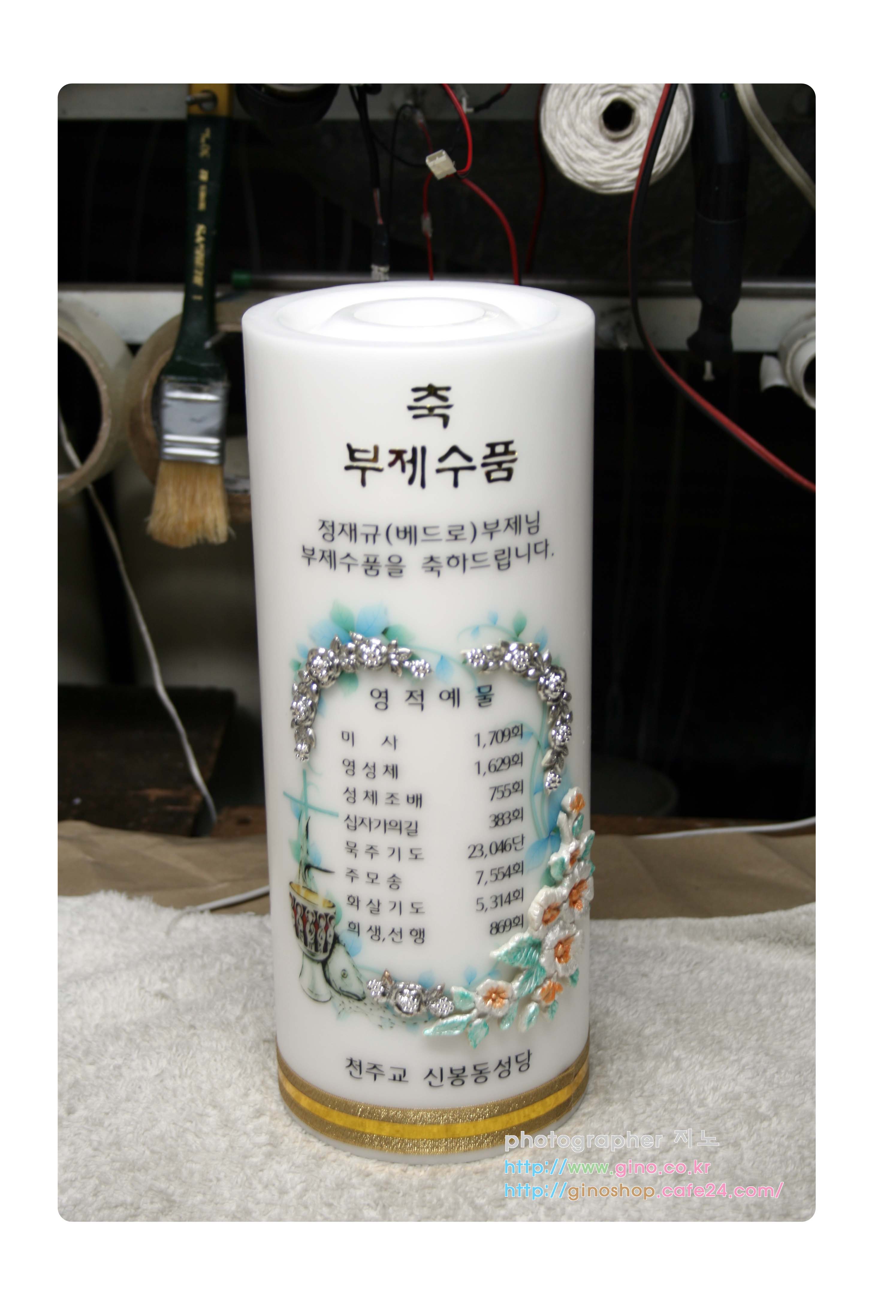 안양대리구 호계동성당에서 축세례 행사때 사용하기 위해서 주문 제작을 하신 양초 캔들 입니다.