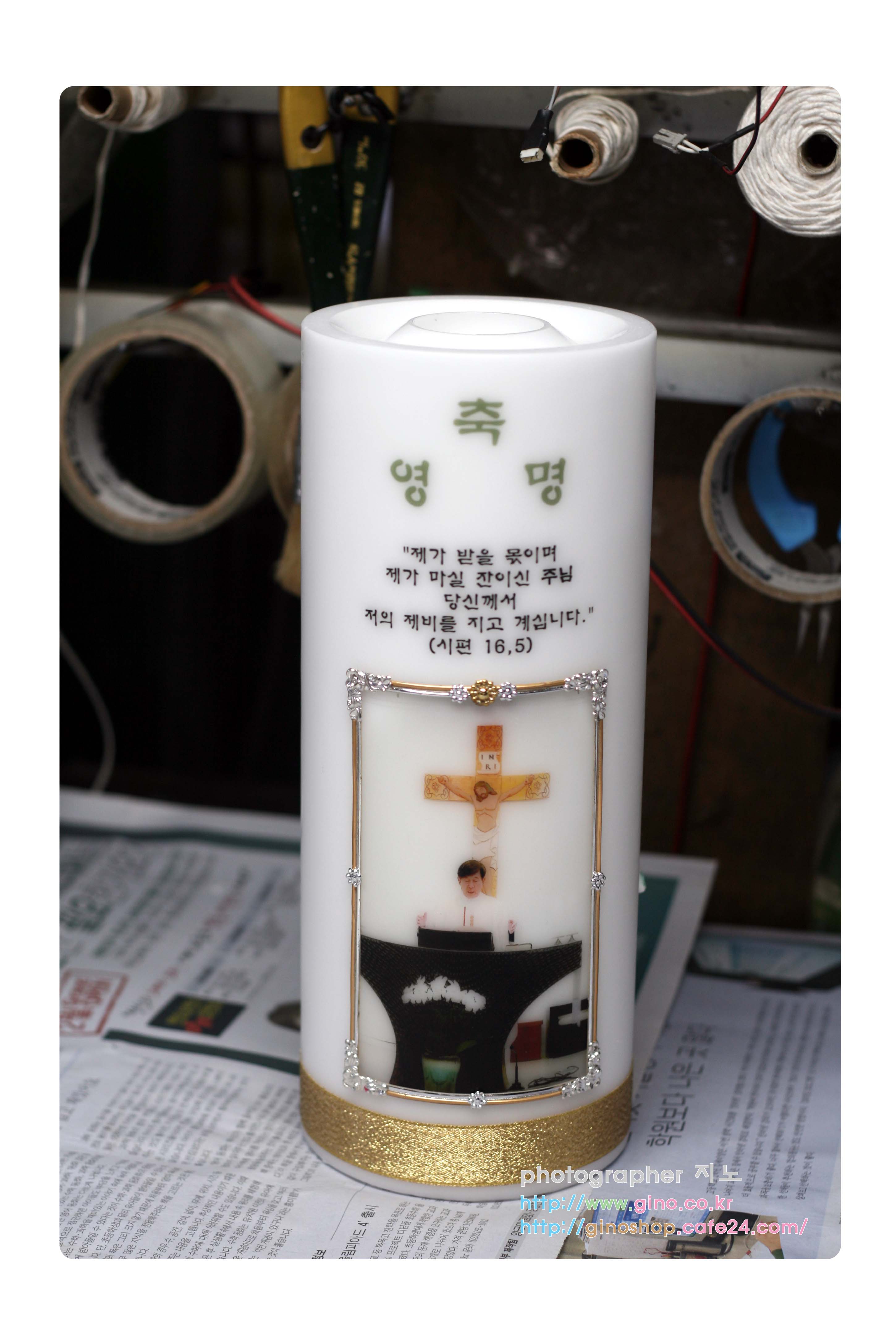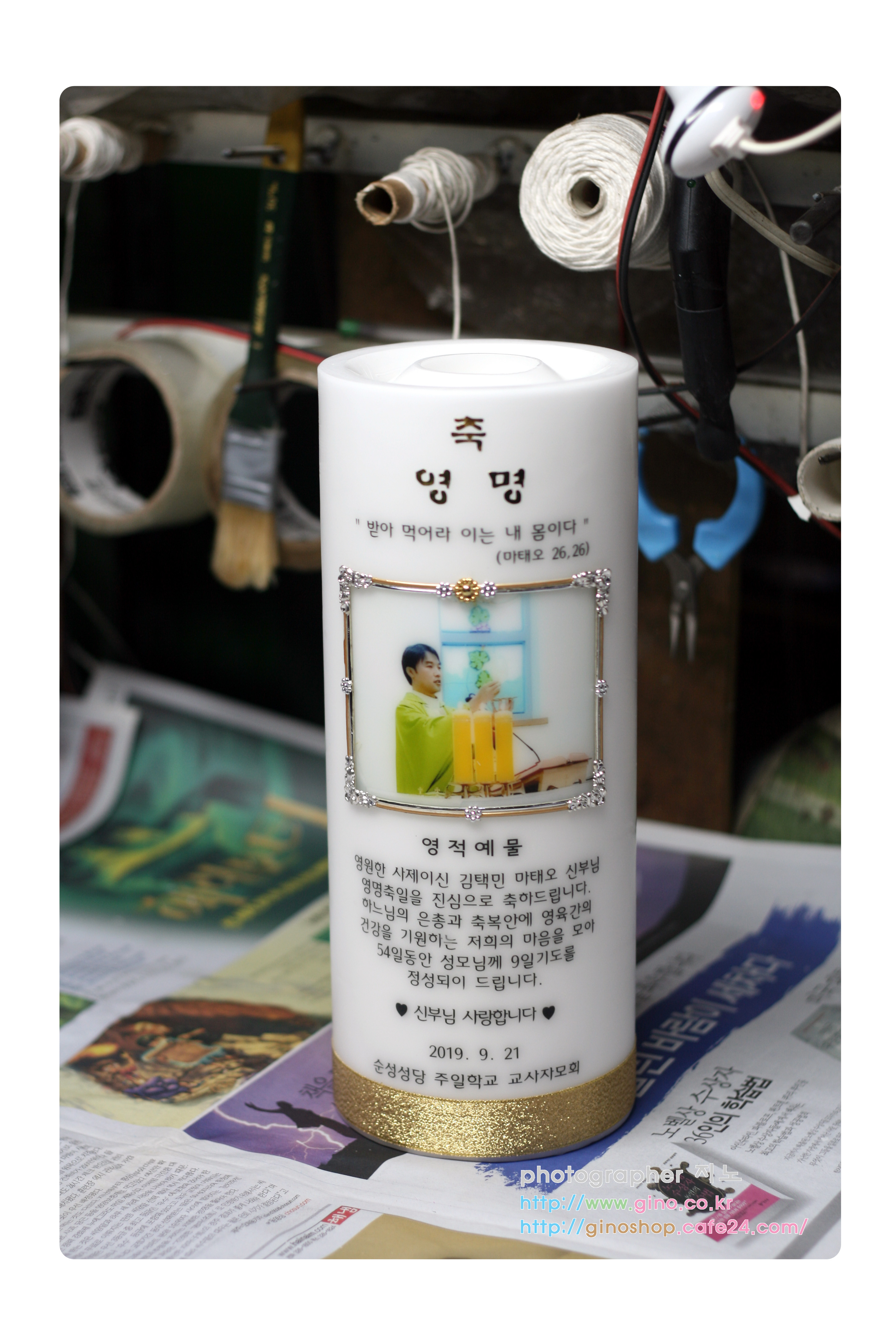 원주.태장1동성당에서 김승오(아우스딩 )신부님의 영명축일 맞이하여 주문 제작을 하신 캔들 입니다.