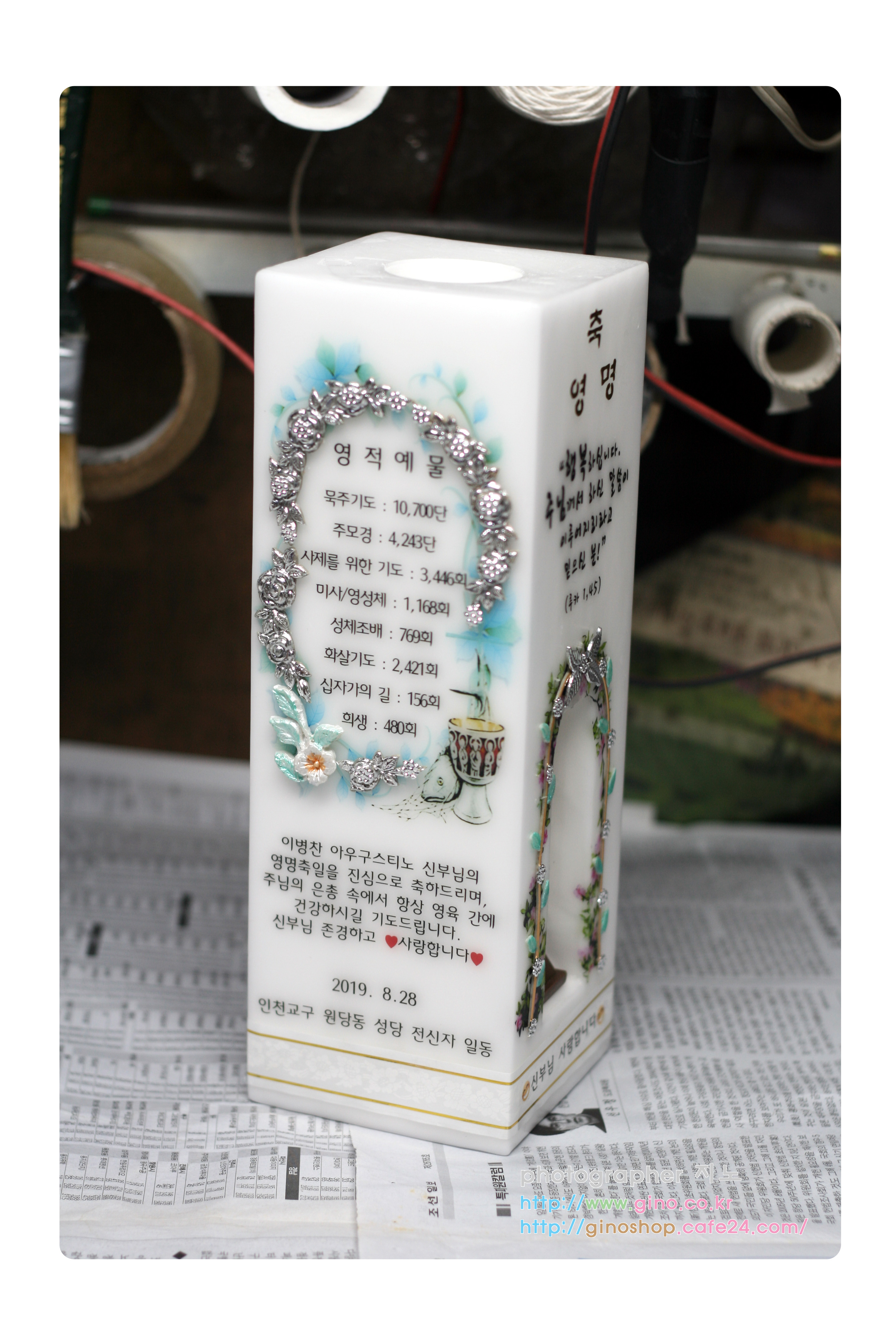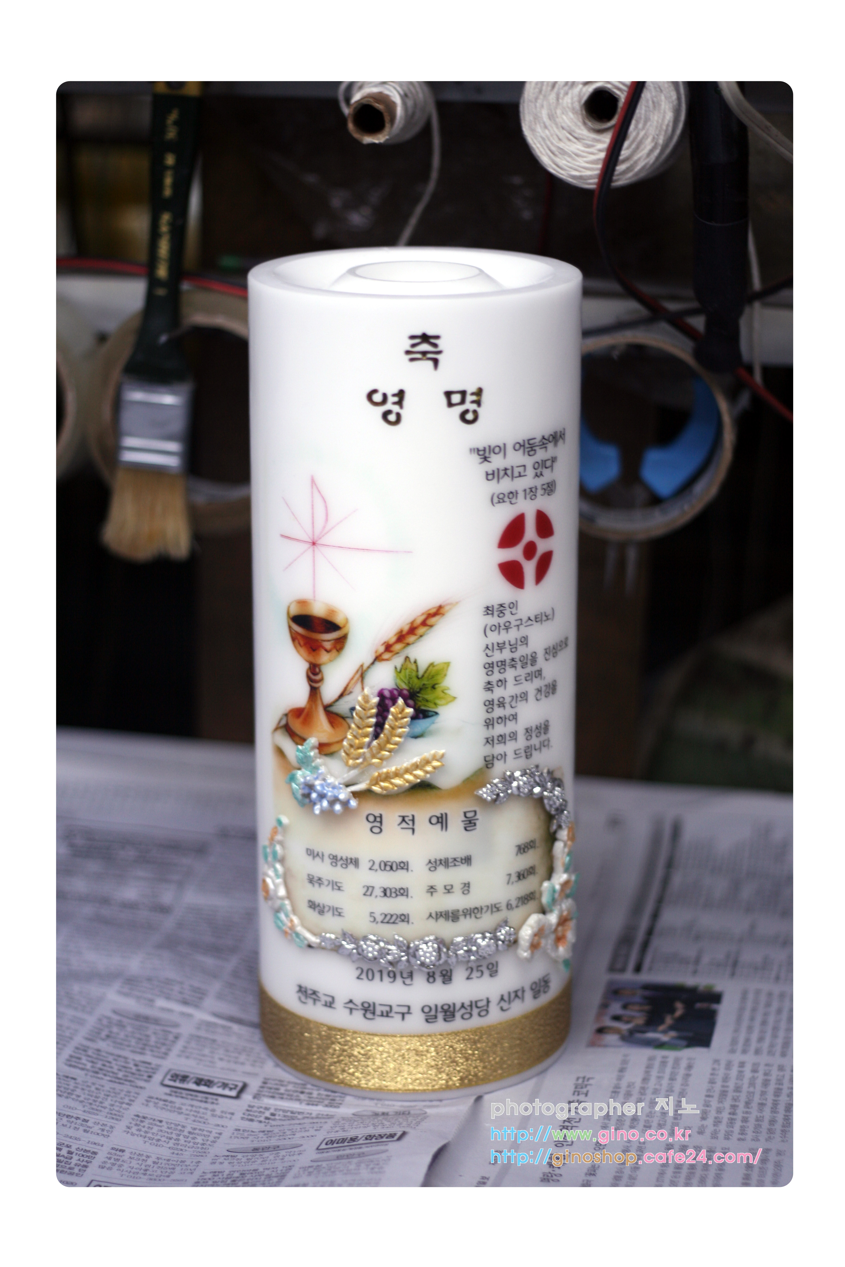 수원교구 일월성당에서 최중인(아우구스티노)신부님 영명축일 맞이하여 정성스런 영적예물을 담아 주문 제작을 하신 캔들 입니다.