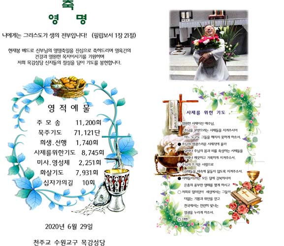 | 의정부교구 후곡성당 송여준(비오)신부님 영명축일 캔들 2019.8.21 (0) | 2020.06.03 |