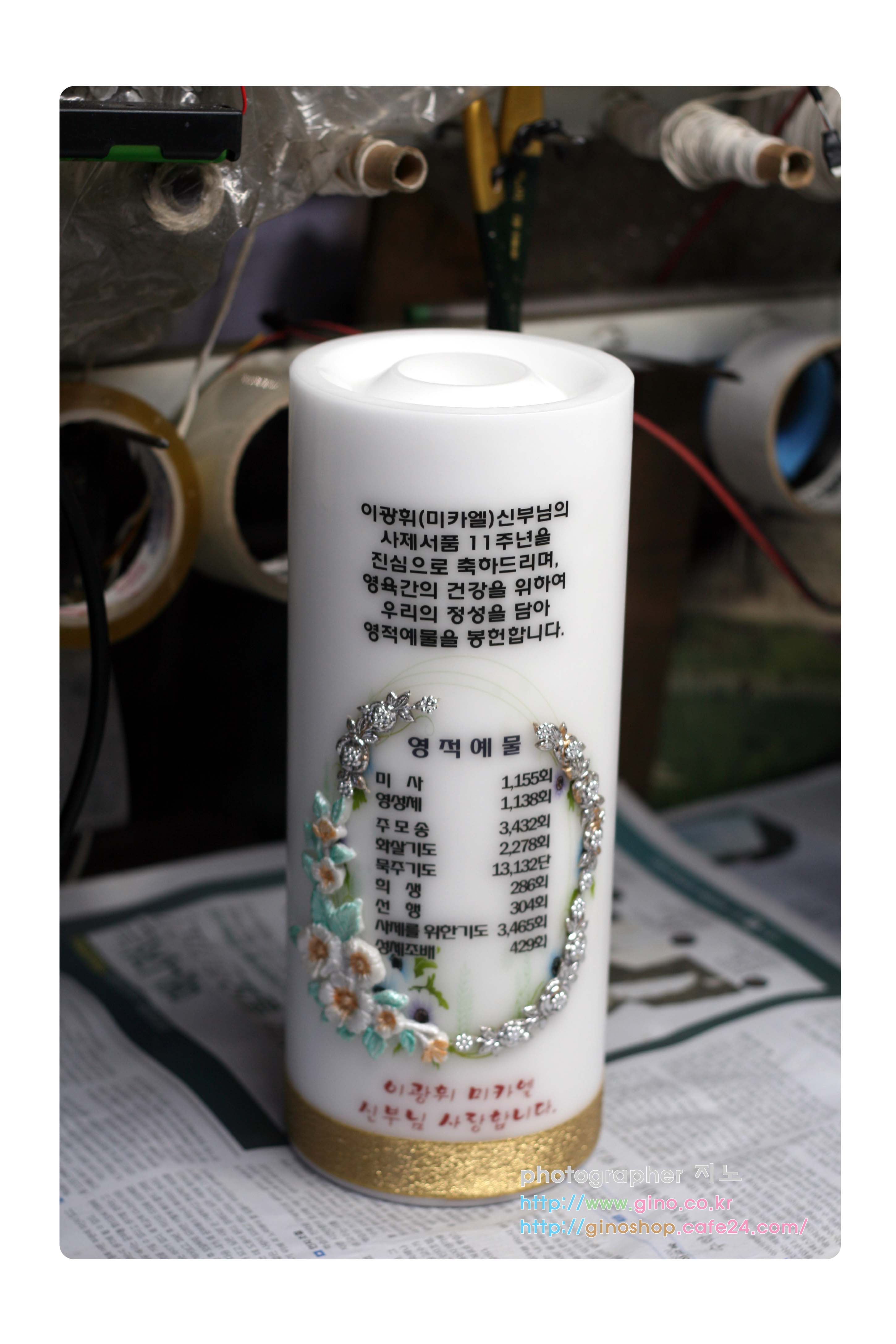 소사벌성당에서 이광희(미카엘)신부님 사제서품11주년 축하 기념 선물로 정성스런 영적예물을 담아 주문 제작을 하신 캔들 입니다.