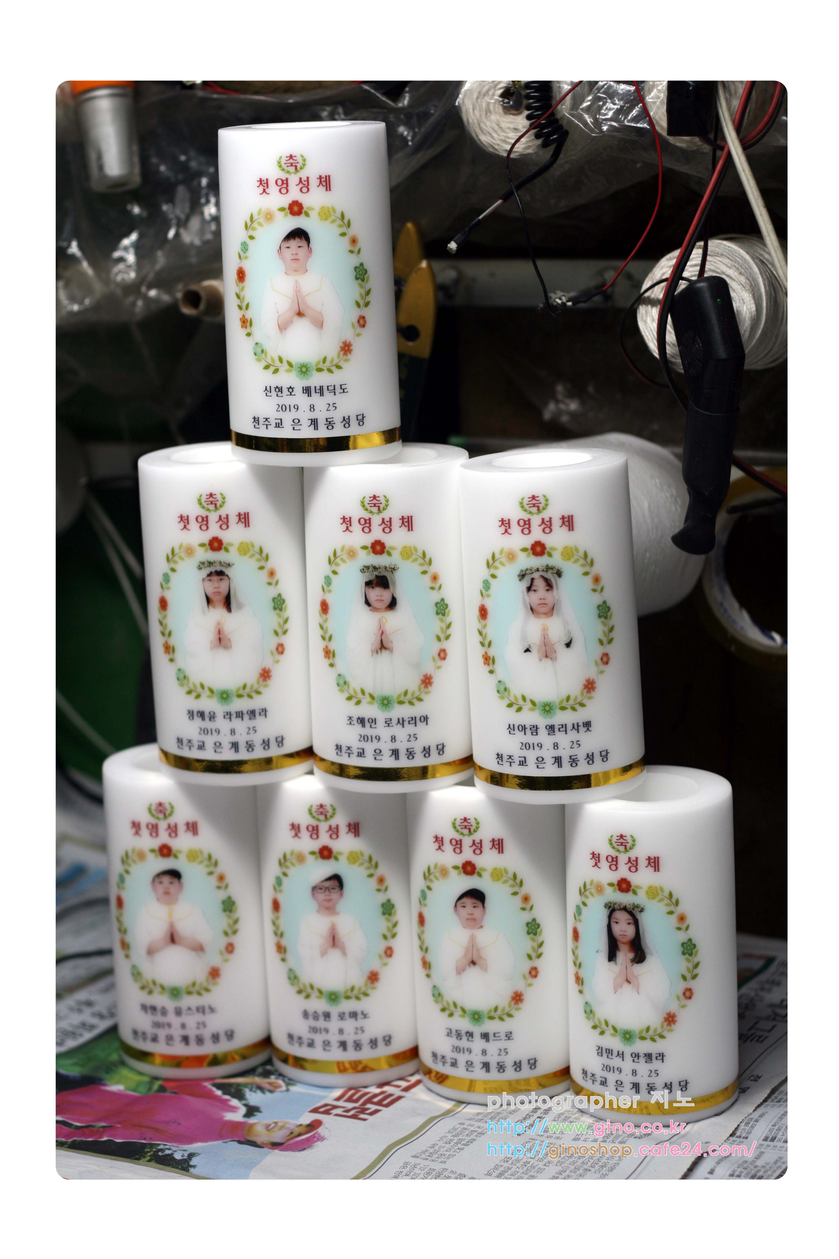 은계동성당에서 첫영성체 행사때 사용하기 위해서 개별 사진과 이름 세례명을 넣어 주문 제작을 하신 캔들 입니다.