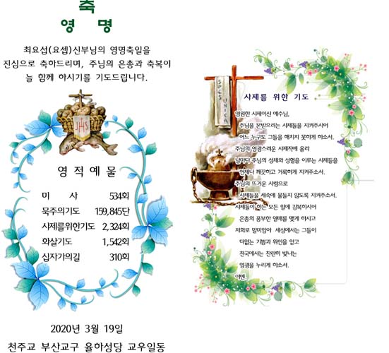최요섭(요셉)신부님의 영명축일을 진심으로 축하드리며, 주님의 은총과 축복이 늘 함께 하시기를 기도드립니다.