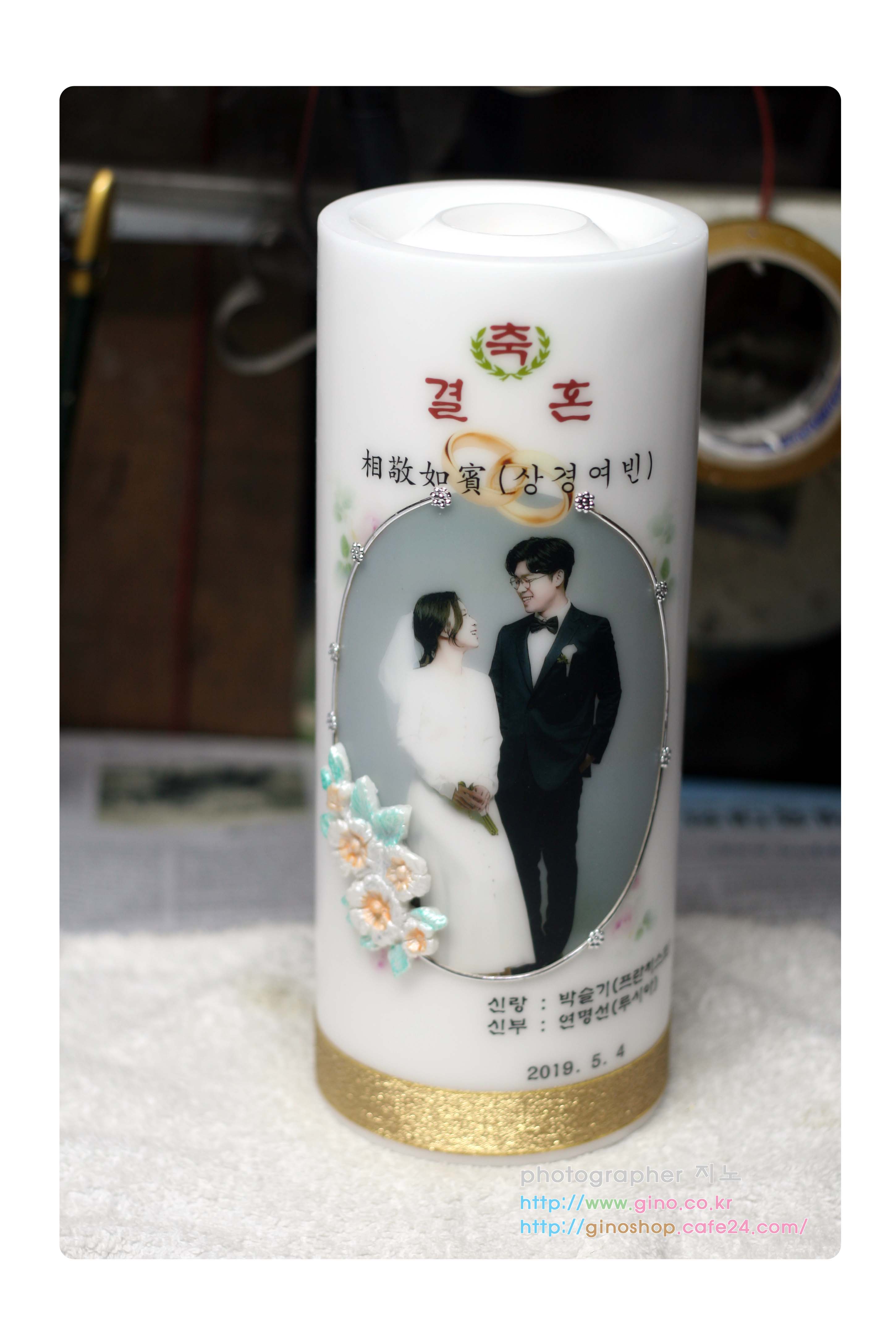 결혼 축하 선물로 주문 제작을 하신 캔들입니다.