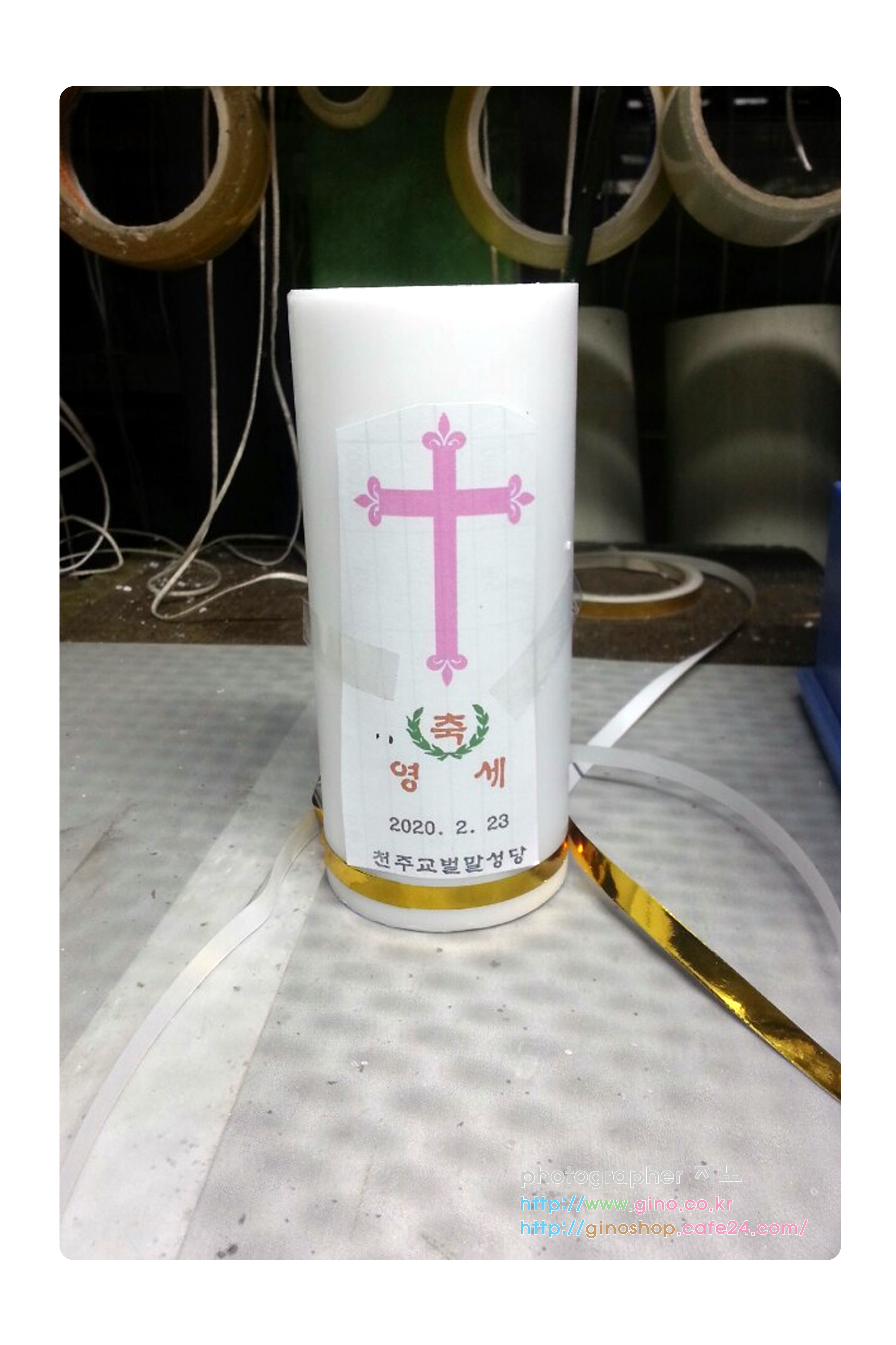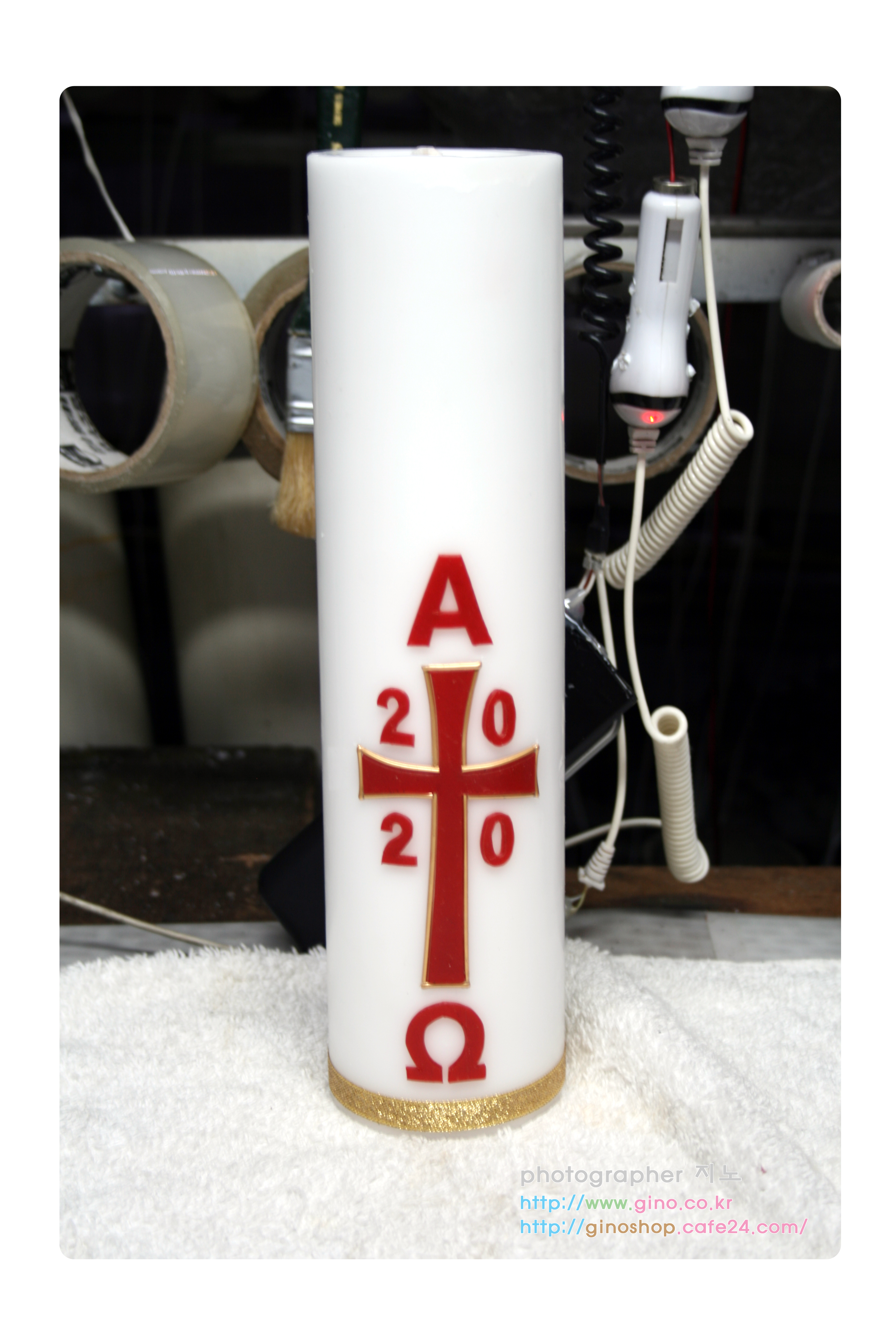 십자가 라인에 무광 금백 캔들 줄 왁스 시트로 최종 완성 되었습니다.