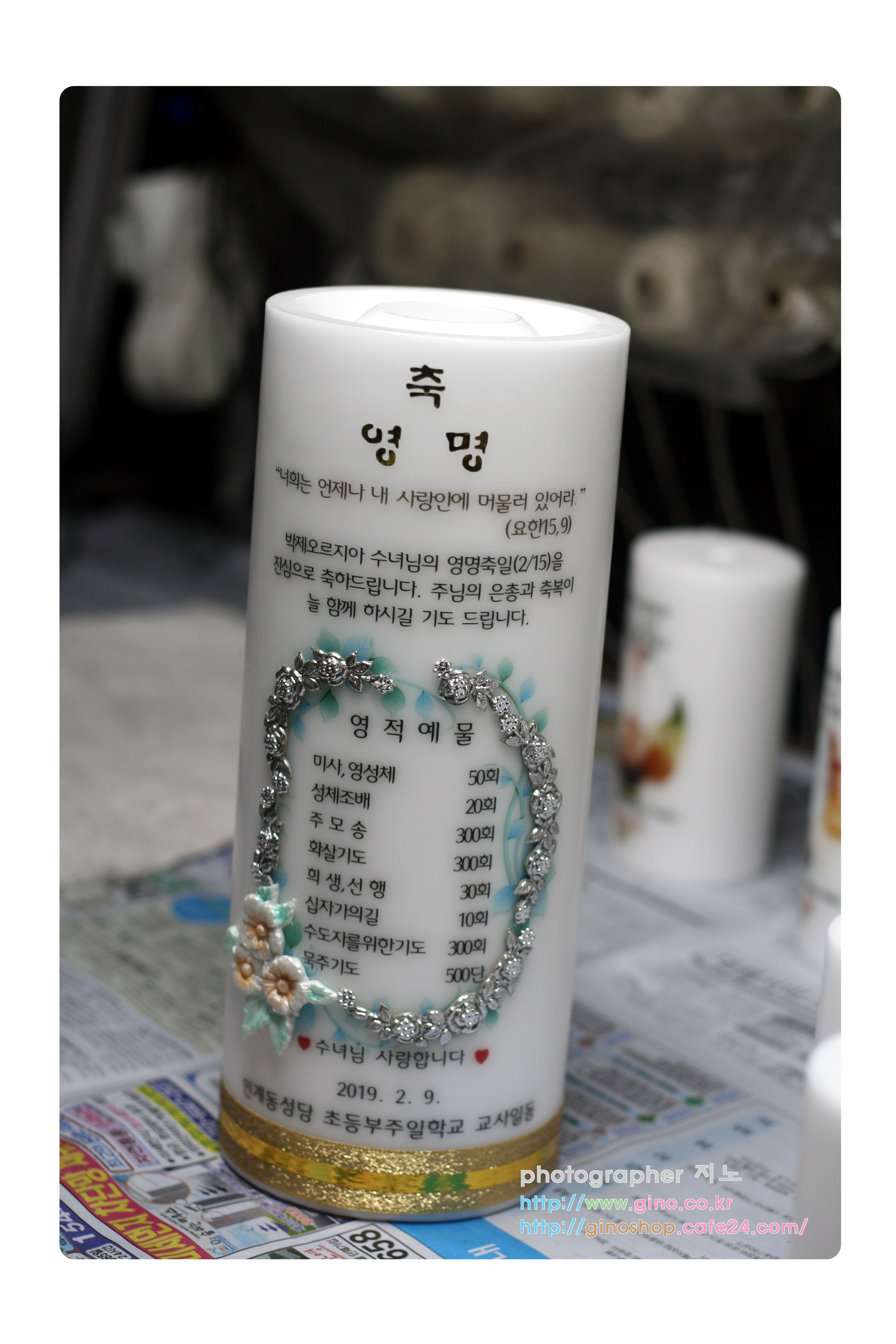 군자성당 축입단 행사때 사용하기 위해서 주문 제작을 하신 캔들 입니다.