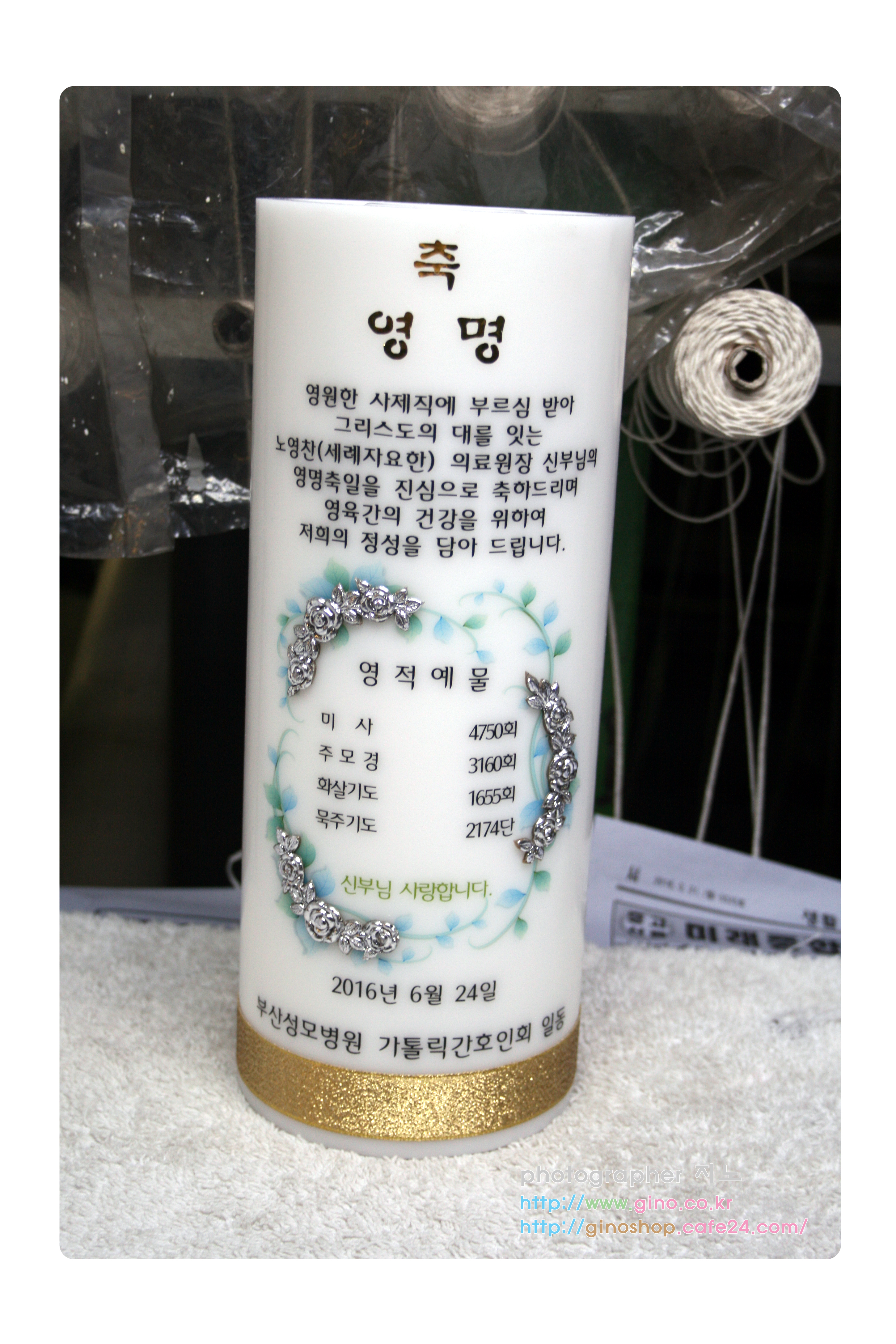 부산성모병원 가톨릭간호인회에서 노영찬(세례자요한)신부님 영명축일 맞이하여 정성스런 영적예물을 담아 주문 제작을 하신 캔들 입니다.