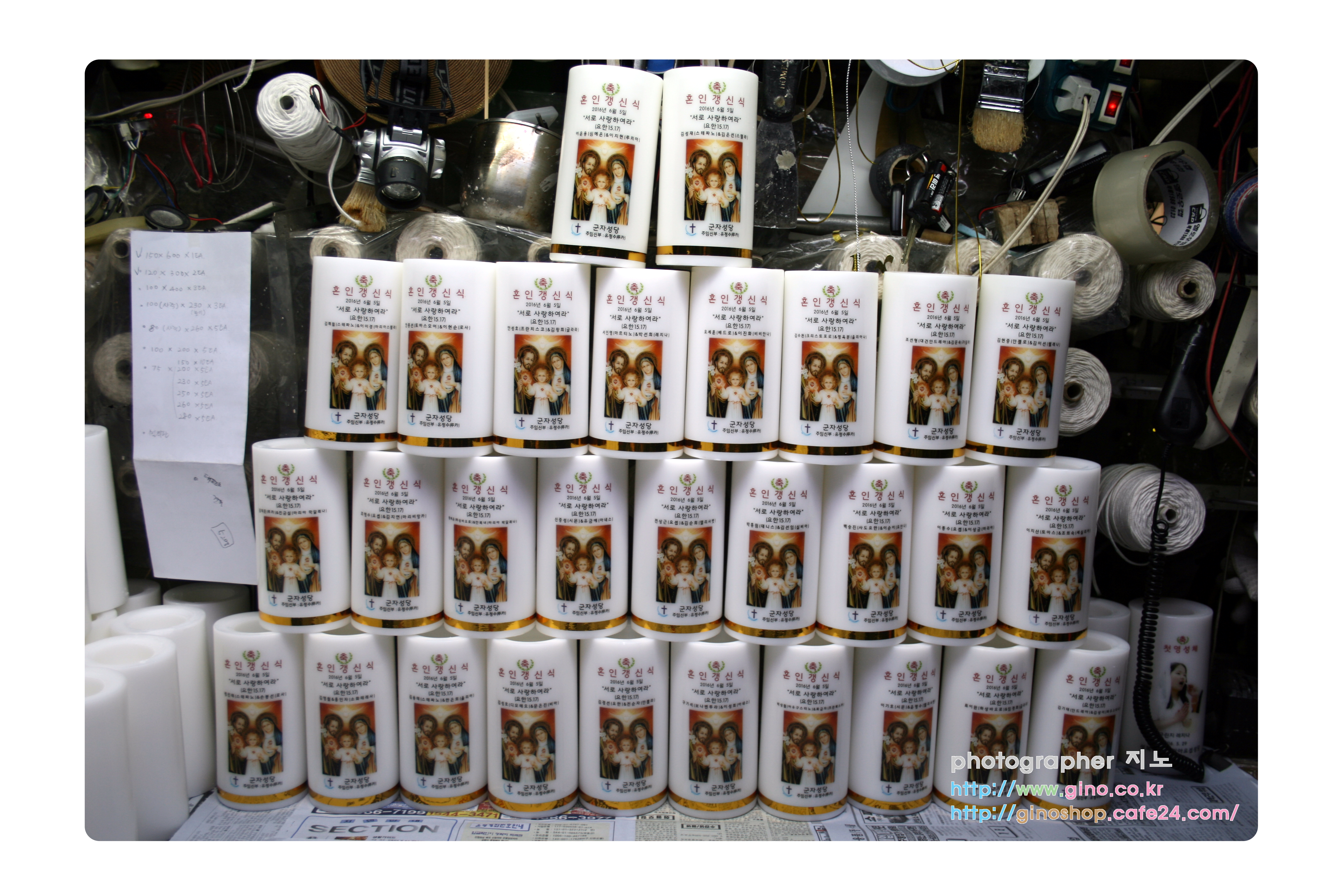 군자성당에서 혼인갱신식 하시는 부부 분들의 이름을 넣어 주문 제작을 하신 캔들 입니다.