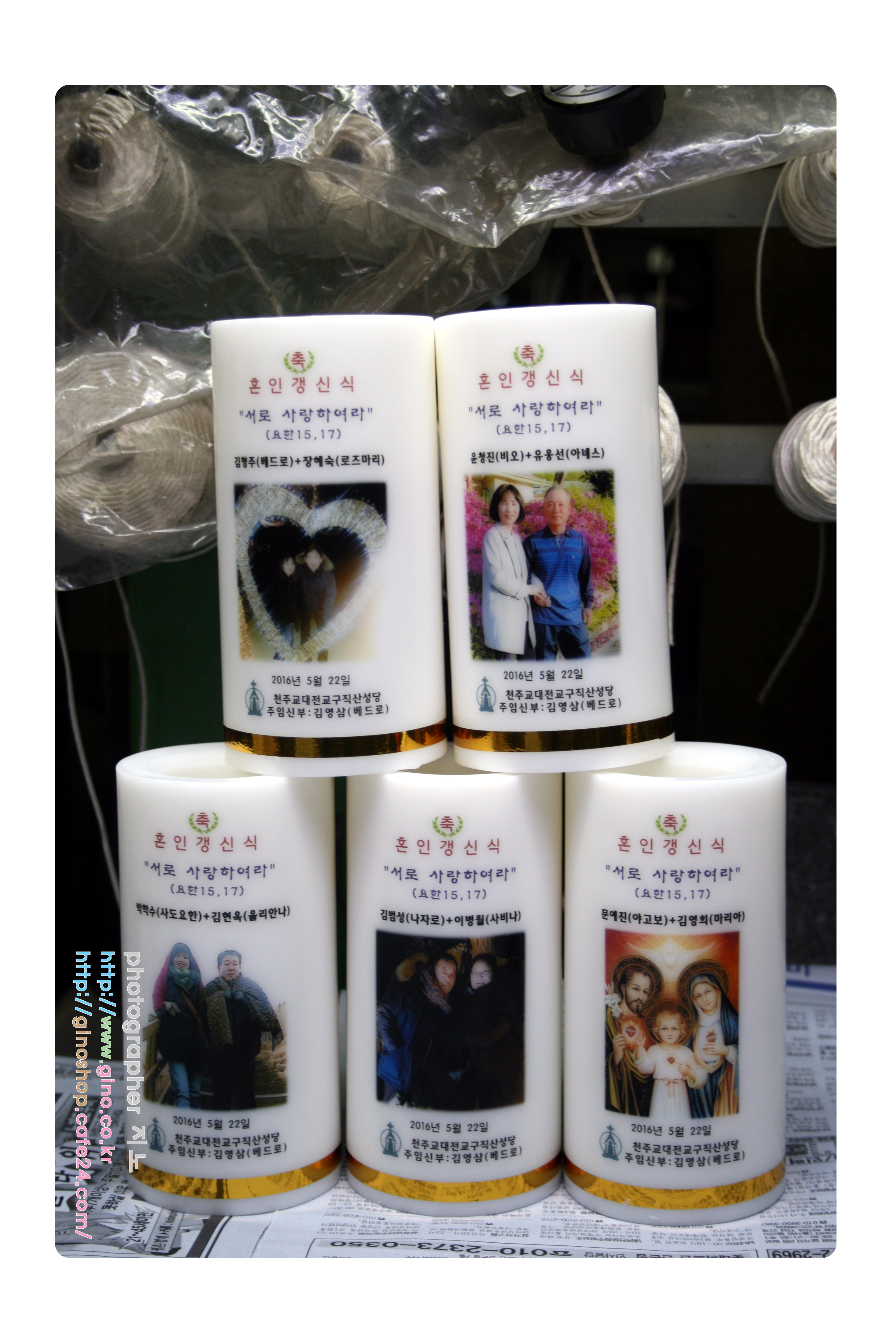 대전교구 직산성당에서 혼인갱신식 받으시는 분들의 사진을 담아 주문 제작을 하신 캔들 입니다.