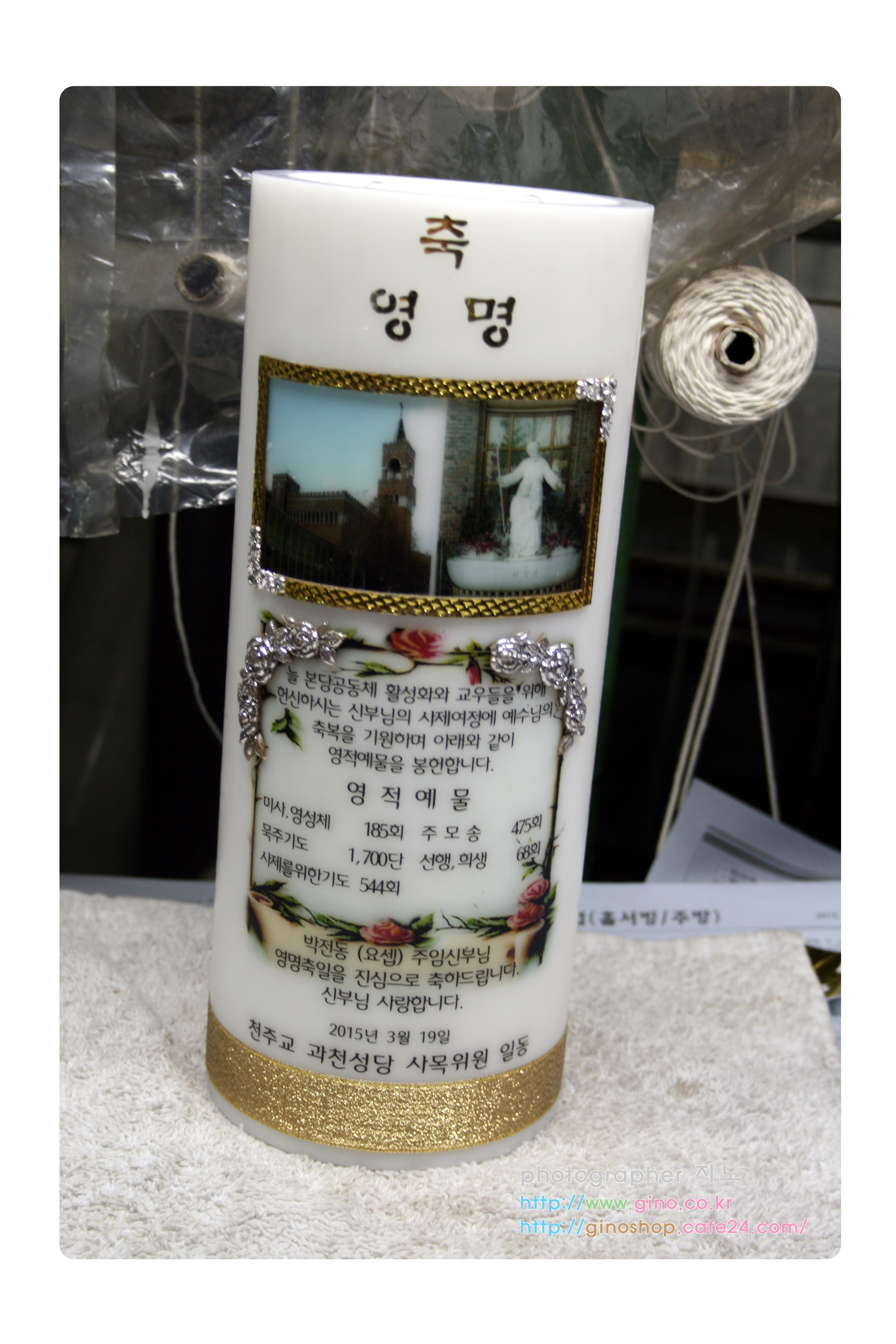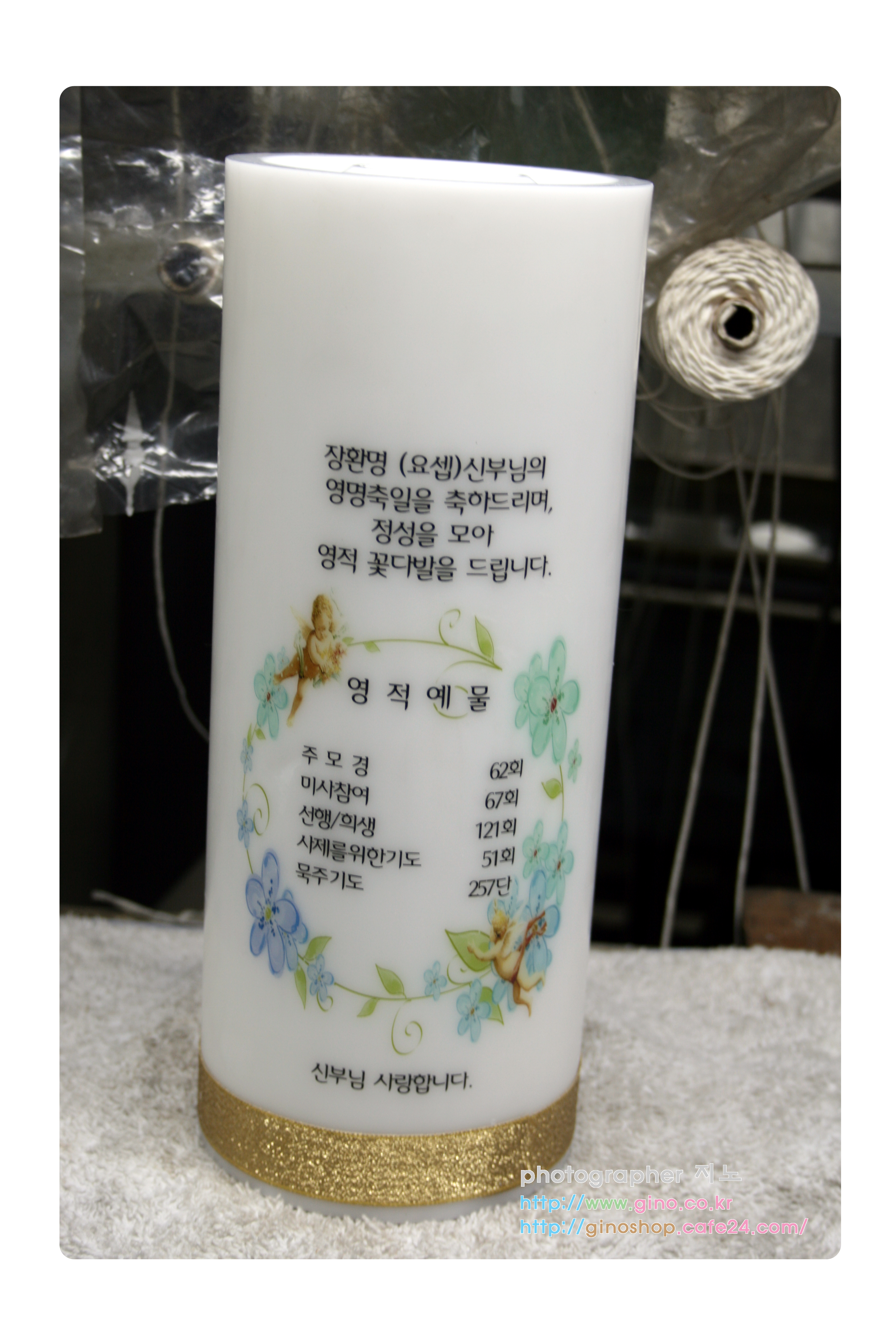 과천성당 사목위원일동에서 박전동(요셉)신부님 영명축일 맞이하여 정성스런 영적예물을 담아 주문 제작을 하신 캔들 입니다.