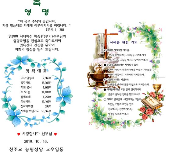 | 매호성당 주일학교 중고등부 장환명 (요셉)신부님 영명축일 양초 캔들 (0) | 2019.10.07 |
