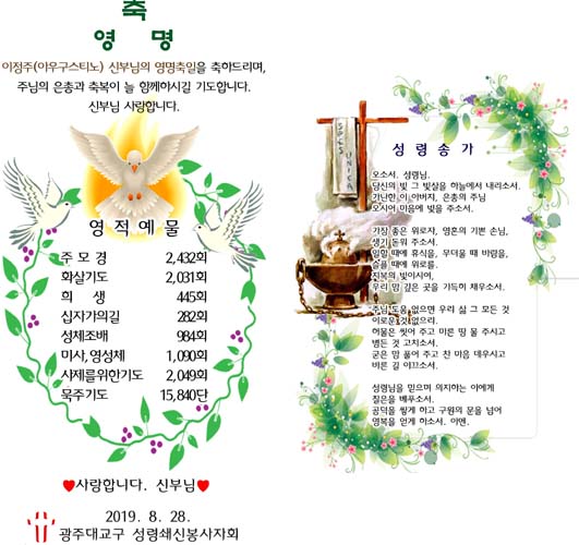 | 광주대교구 성령쇄신봉사자회 영명축일 캔들 초안 (0) | 2019.08.20 |