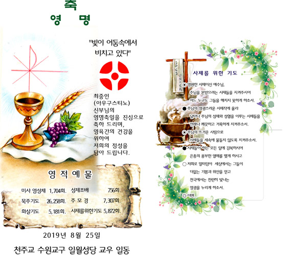 2019년 8월 25일 천주교 수원교구 일월성당 교우 일동