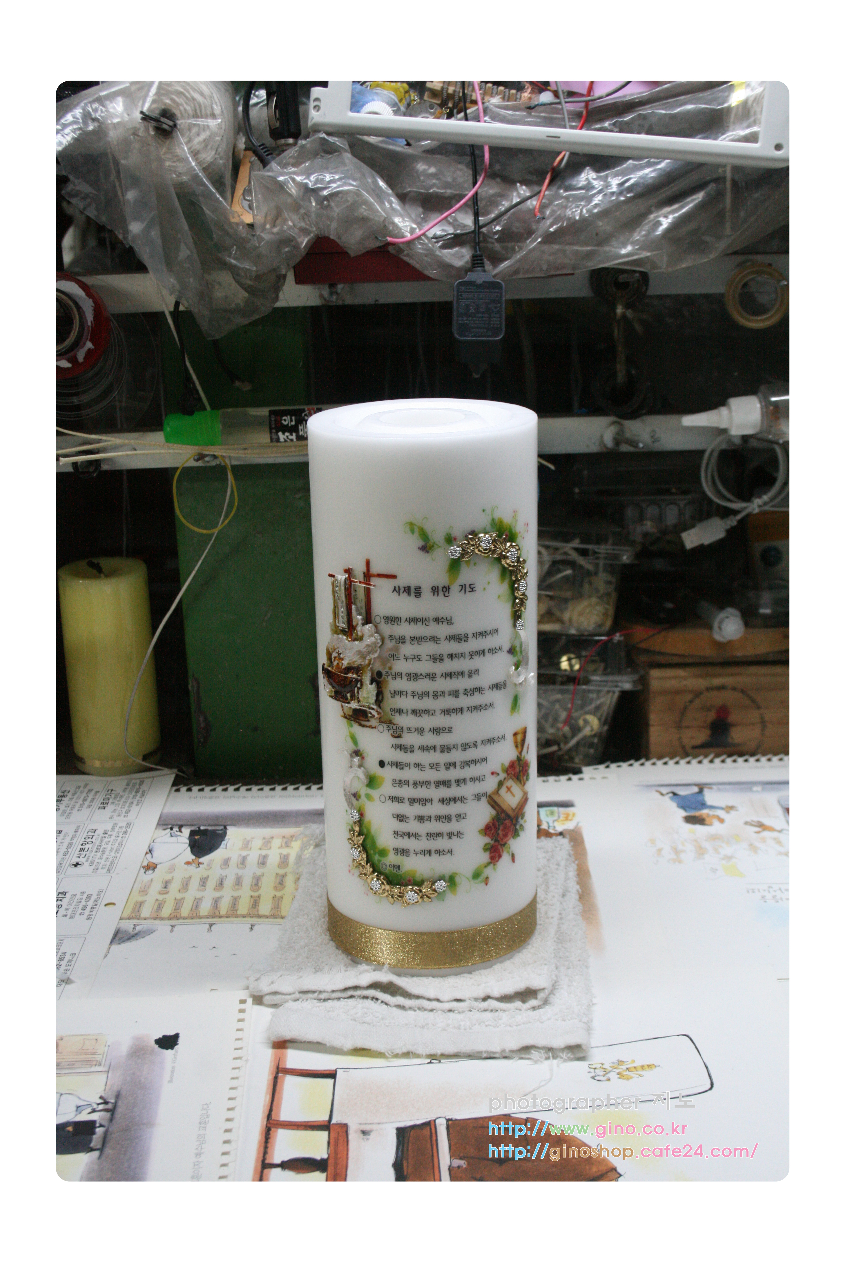 전신부님께서 첫영성체 선물로 고급지게 만들어갈라고 주문 제작을 으뢰하신 양초 캔들입니다.