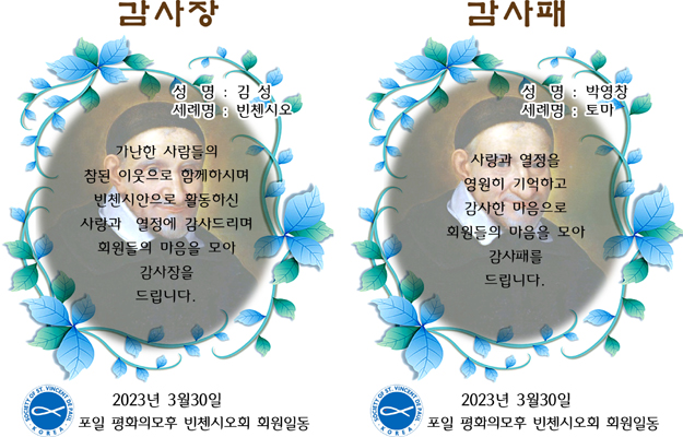 포일 평화의모후 빈첸시오회 감사초 감사패 초안포일 평화의모후 빈첸시오회 감사초 감사패 초안