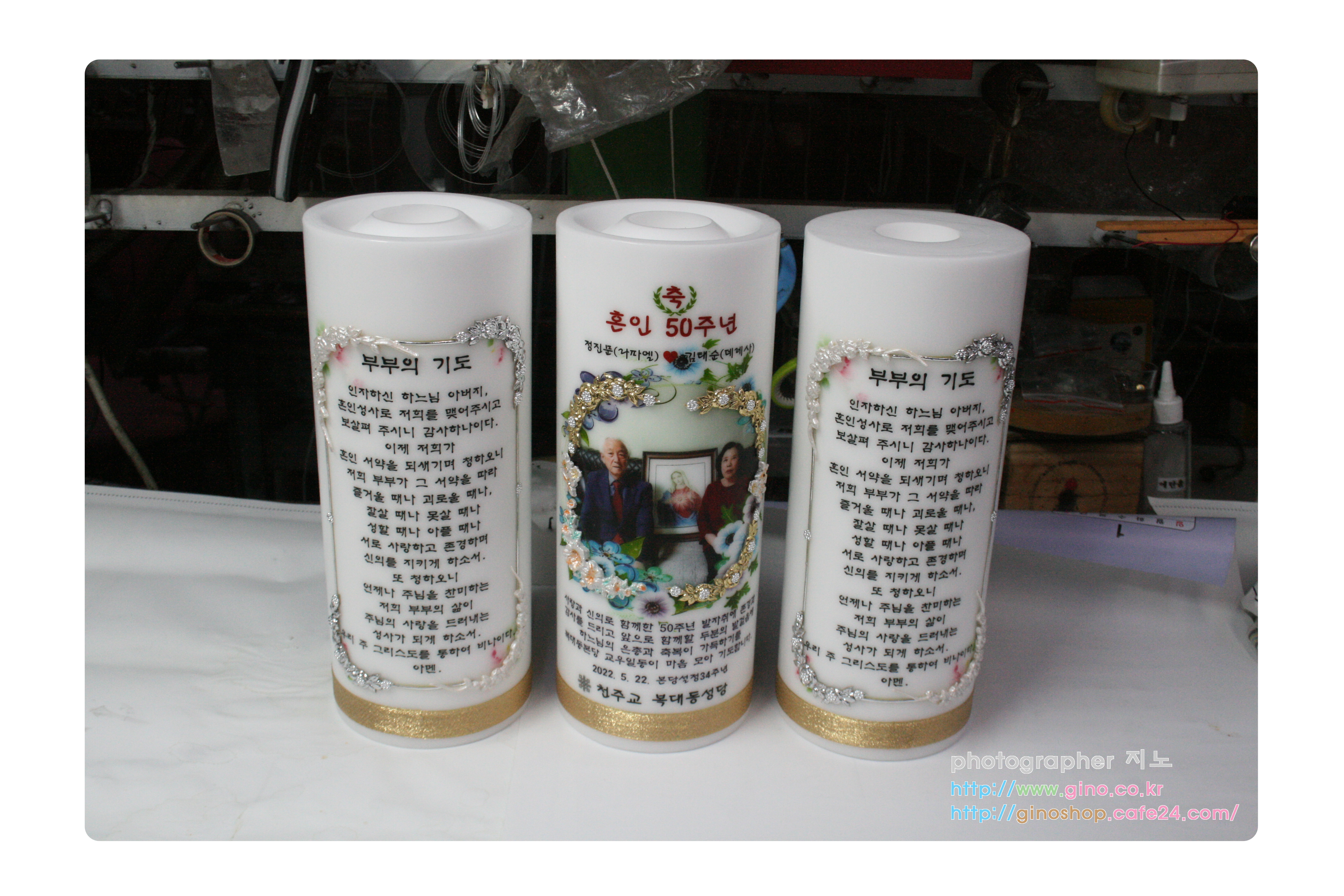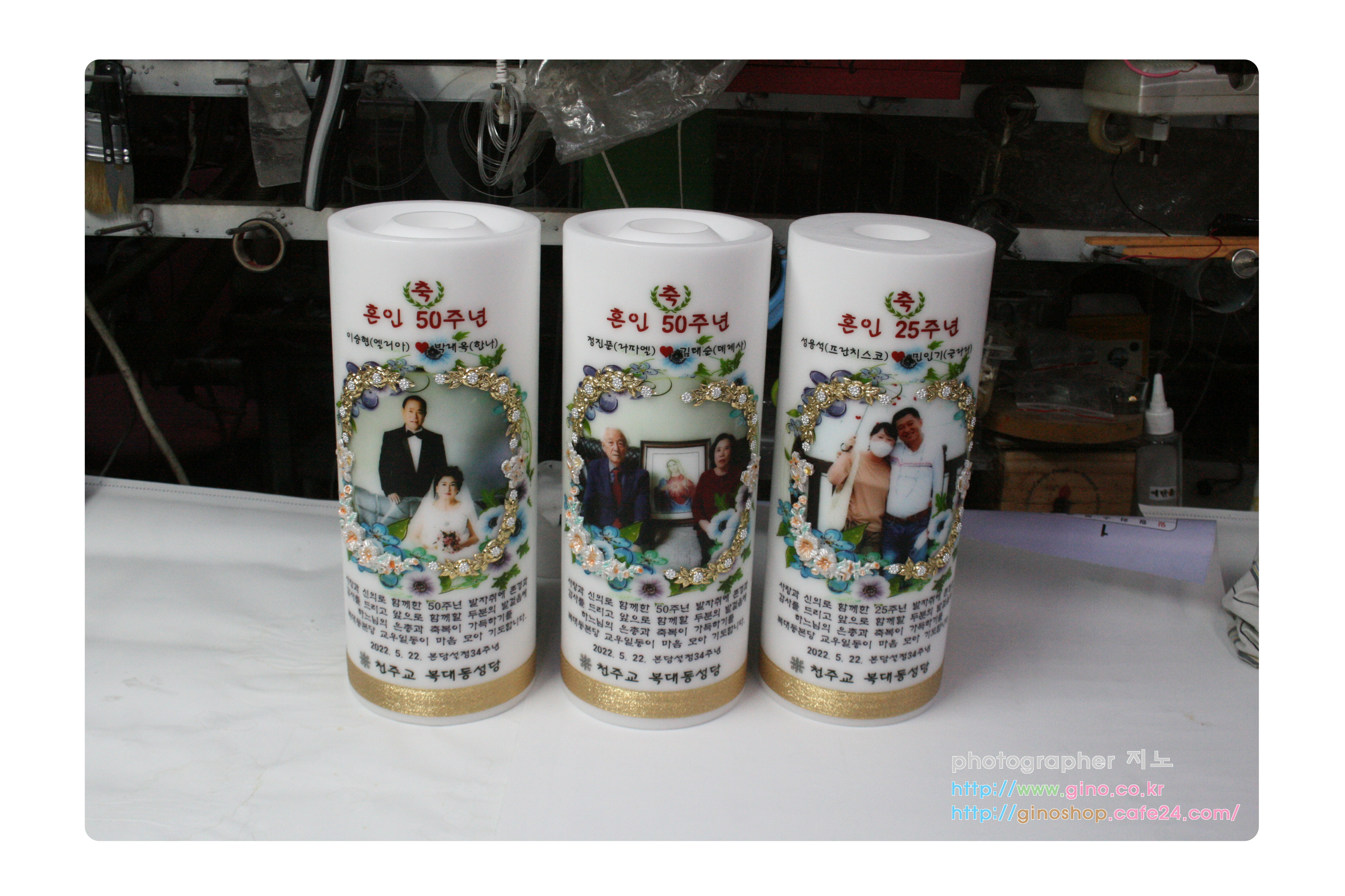 복대동성당에서 혼인50주년, 25주년 맞으시는 분들 사진과 축하 메세지를 담아 주문 제작을 하신 양초 캔들