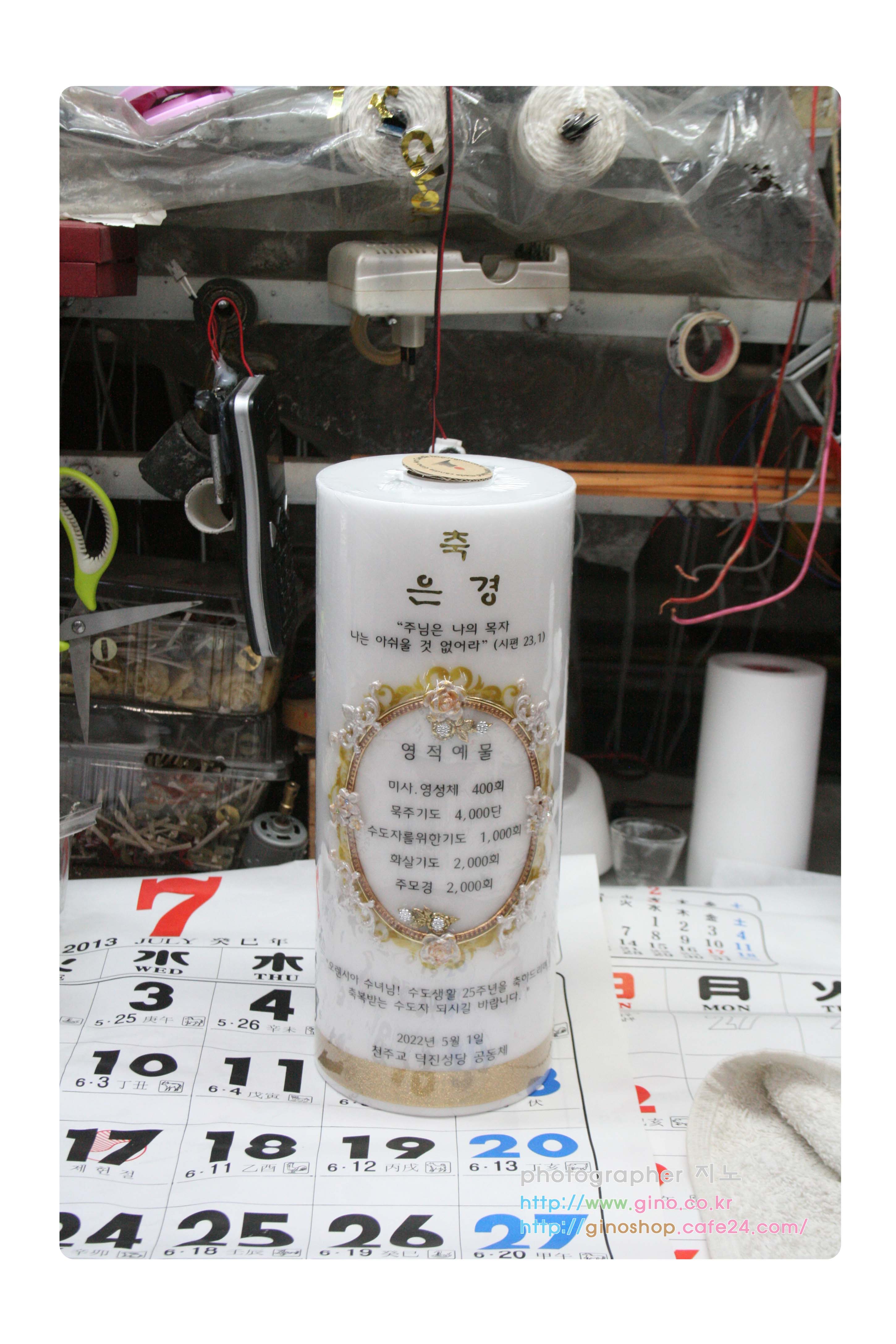 동천동성당에서 축세례 행사때 사용하기 위해서 주문 제작을 하신 양초 캔들 입니다.